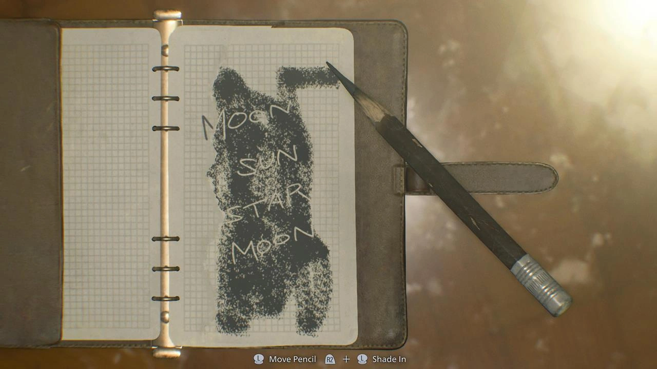 Эта подсказка намекает, что каждый из трёх символов — Луна, Солнце и Звезда — соответствует одной из главных персон. У руководителя каждого медцентра в комплексе имеется свой кабинет. В результате вам предстоит заглянуть во все три кабинета, чтобы собрать предметы для доступа в главный зал. Перед уходом из комнаты охраны спуститесь по лестнице в помещение с лекарствами и подберите ключ-карту западного крыла с тела (она выдастся автоматически после кат-сцены).