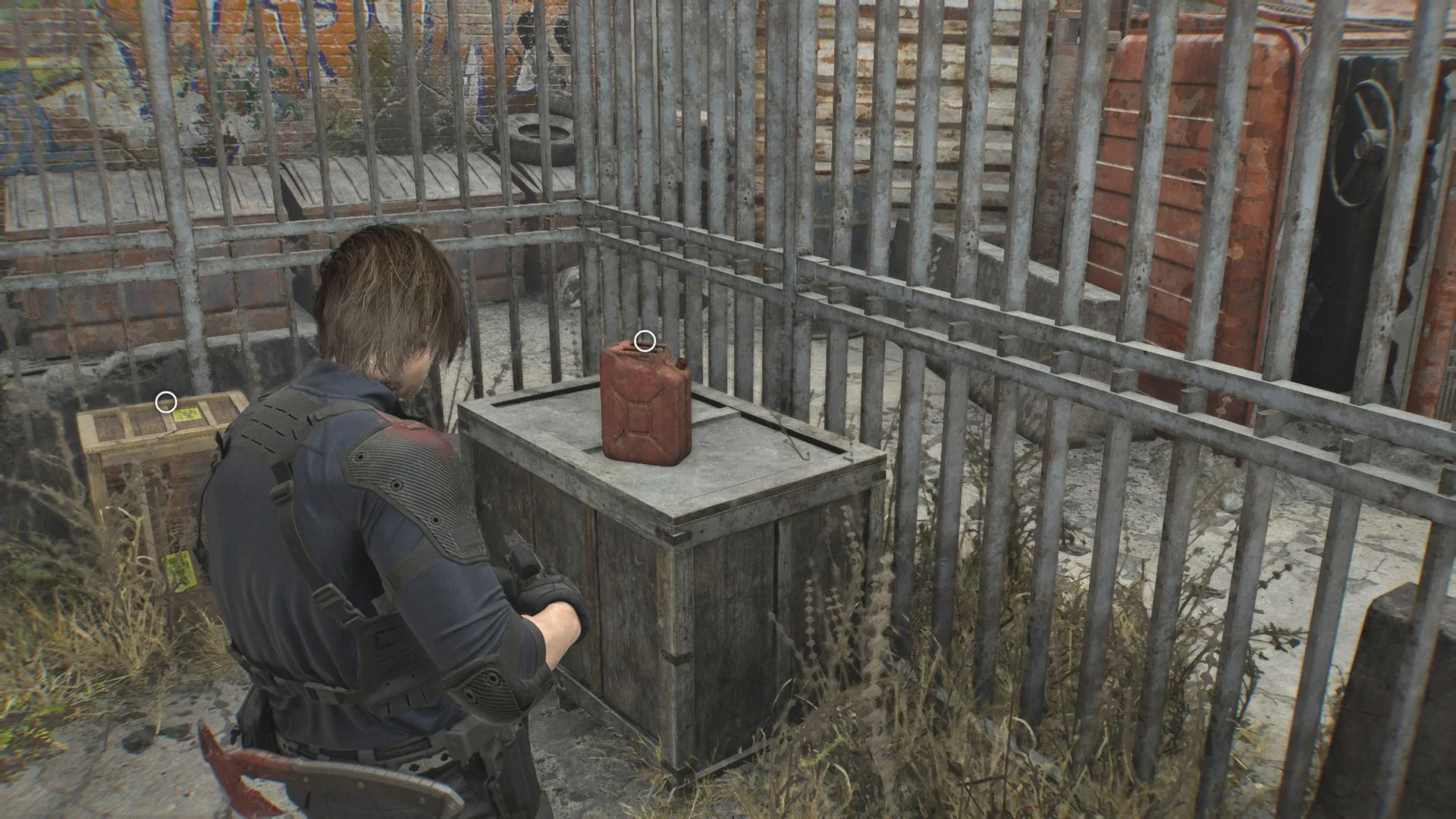 - Канистра найдена! Вернитесь к восточному зданию заправки. Пройдите через него — за металлическим забором вас ждет канистра.
