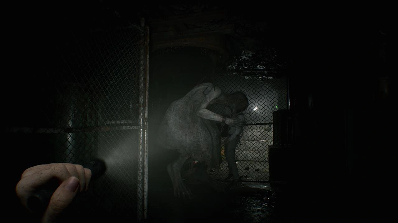 Бросьте пустую бутылку, чтобы отвлечь противника, и быстро вернитесь через щель. Альтернативно, можно дождаться, пока монстр начнет патрулировать помещение, и обойти его. При отступлении монстр снова появится из потолка, но у вас будет достаточно времени, чтобы добраться до комнаты охраны.