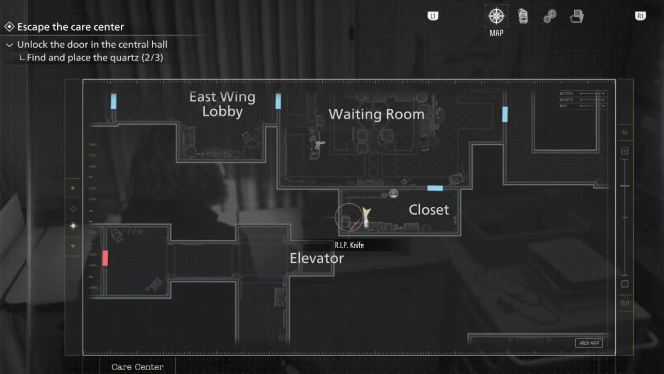 Еще один экземпляр ножа «Убийца» отыщется в кладовой, расположенной южнее комнаты отдыха в восточном крыле клиники. Для доступа сюда потребуется браслет с ID первого уровня, который можно найти в коридоре, неподалеку от кабинета ведущего исследователя.