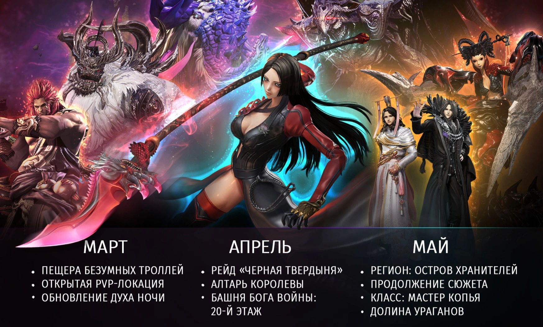 В мае откроется новый регион "Остров Хранителей", который продолжит развитие основного сюжета. Ключевым событием станет появление класса "Мастер копья".