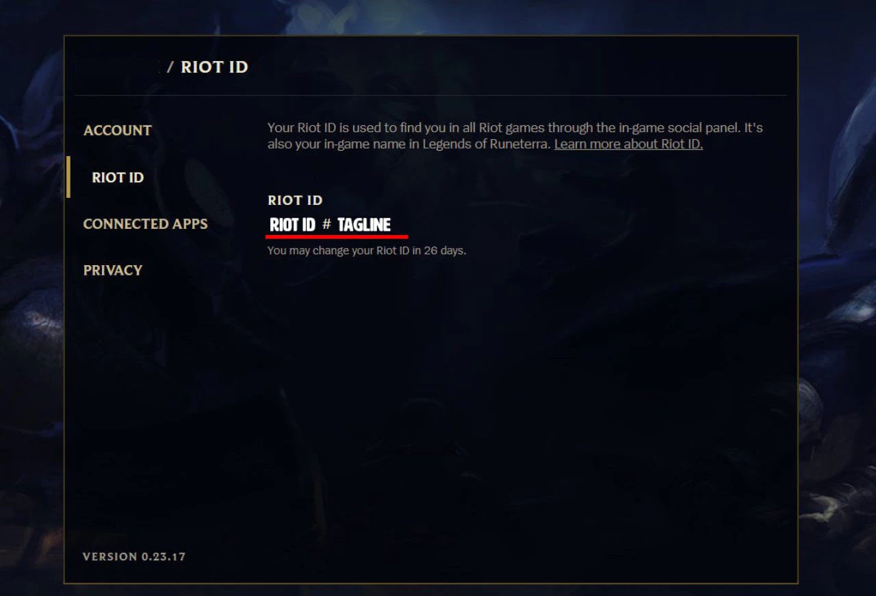 Вы можете найти свой собственный Riot ID и слоган:
