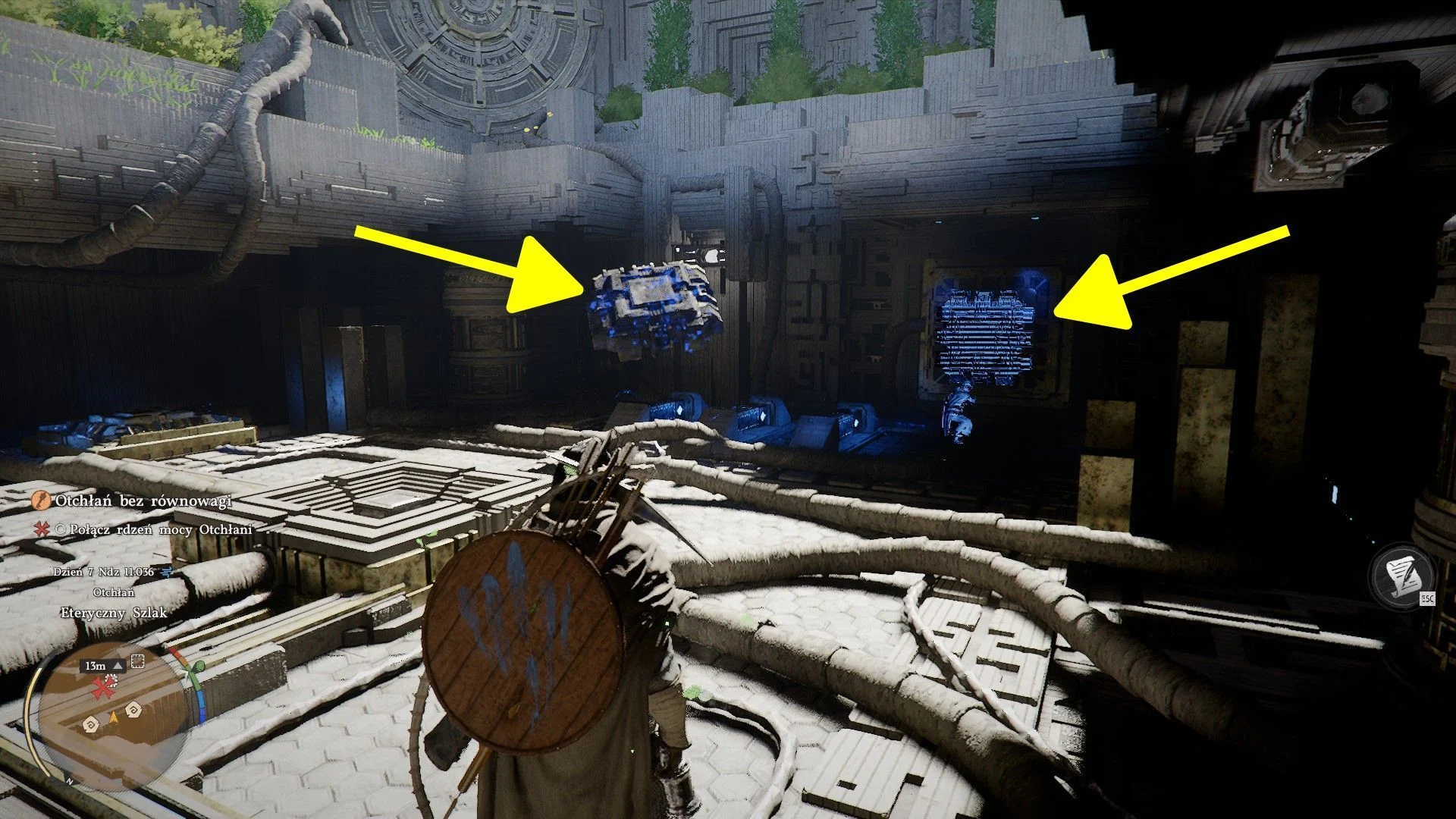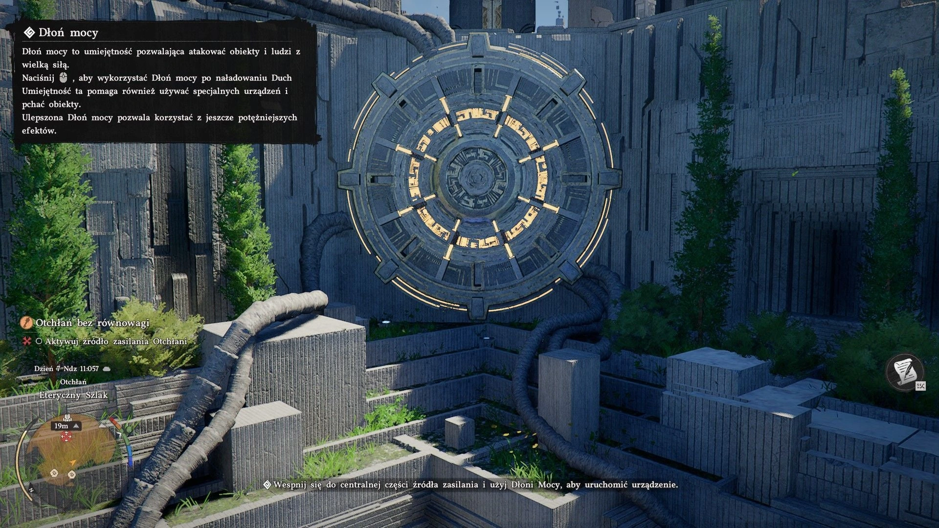 - Энергетические механизмы: Здесь тебе помогут энергетические механизмы. Подключи ядро, захвати поток энергии "Ладонью силы" и используй его, чтобы разрушить преграду.
