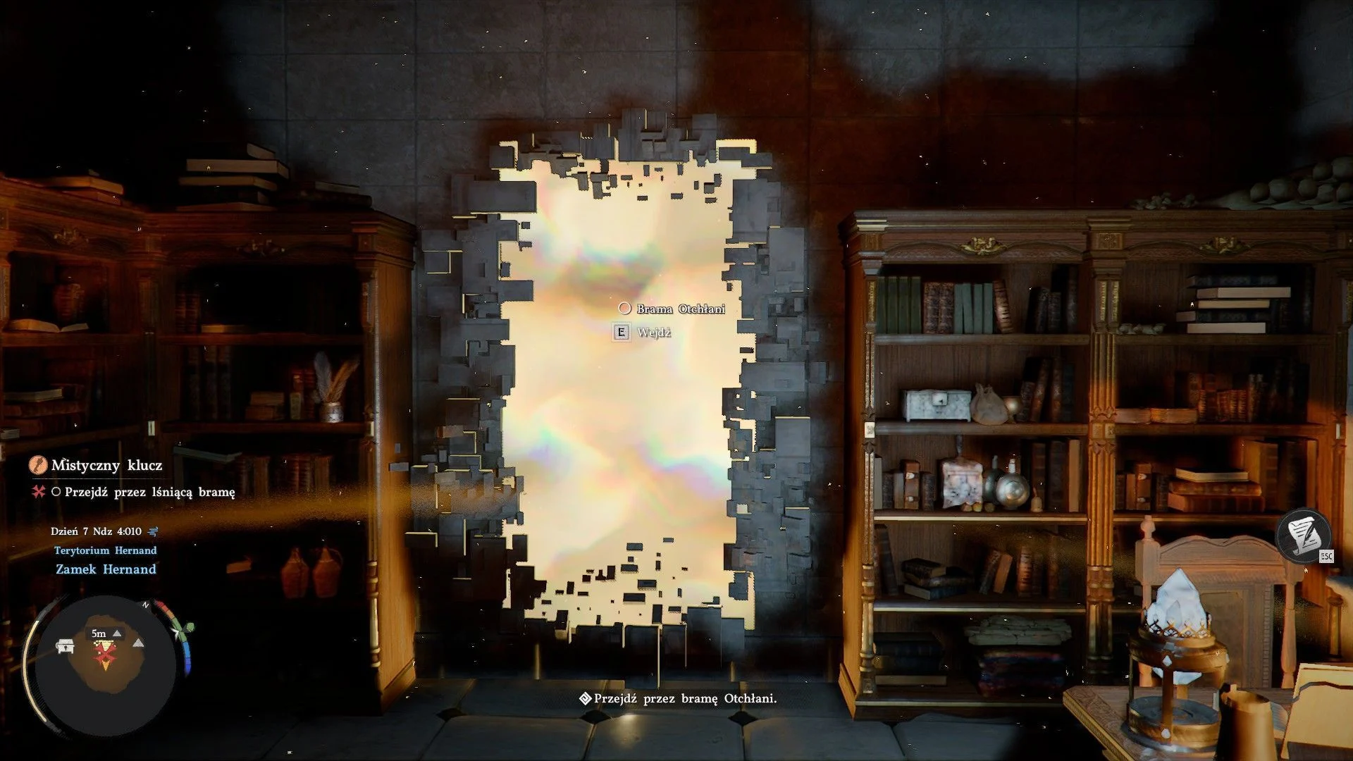 - Вход в святилище: Как только ты войдёшь в само здание Архива, начнётся настоящее приключение. Вокруг тебя — парящие полки, замысловатые механизмы и таинственные руны.