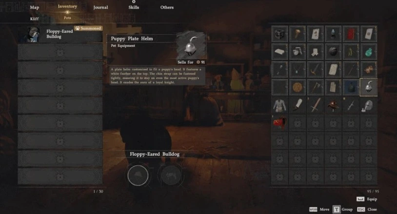 На данный момент в игре доступны несколько типов снаряжения, в основном ориентированных на питомцев-собак: