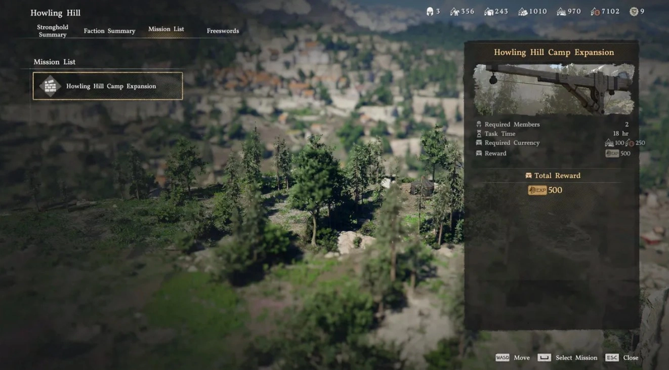 Прежде чем отдавать приказы о начале работ, убедитесь, что в лагерной казне достаточно припасов. Для миссии по расширению Воющего Холма вам понадобится: