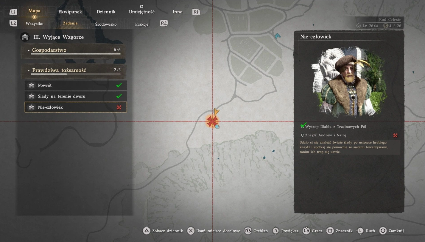 - Первичное задание: «Следы в поместье» — посетить руины поместья Котлинец, где случилась резня.
