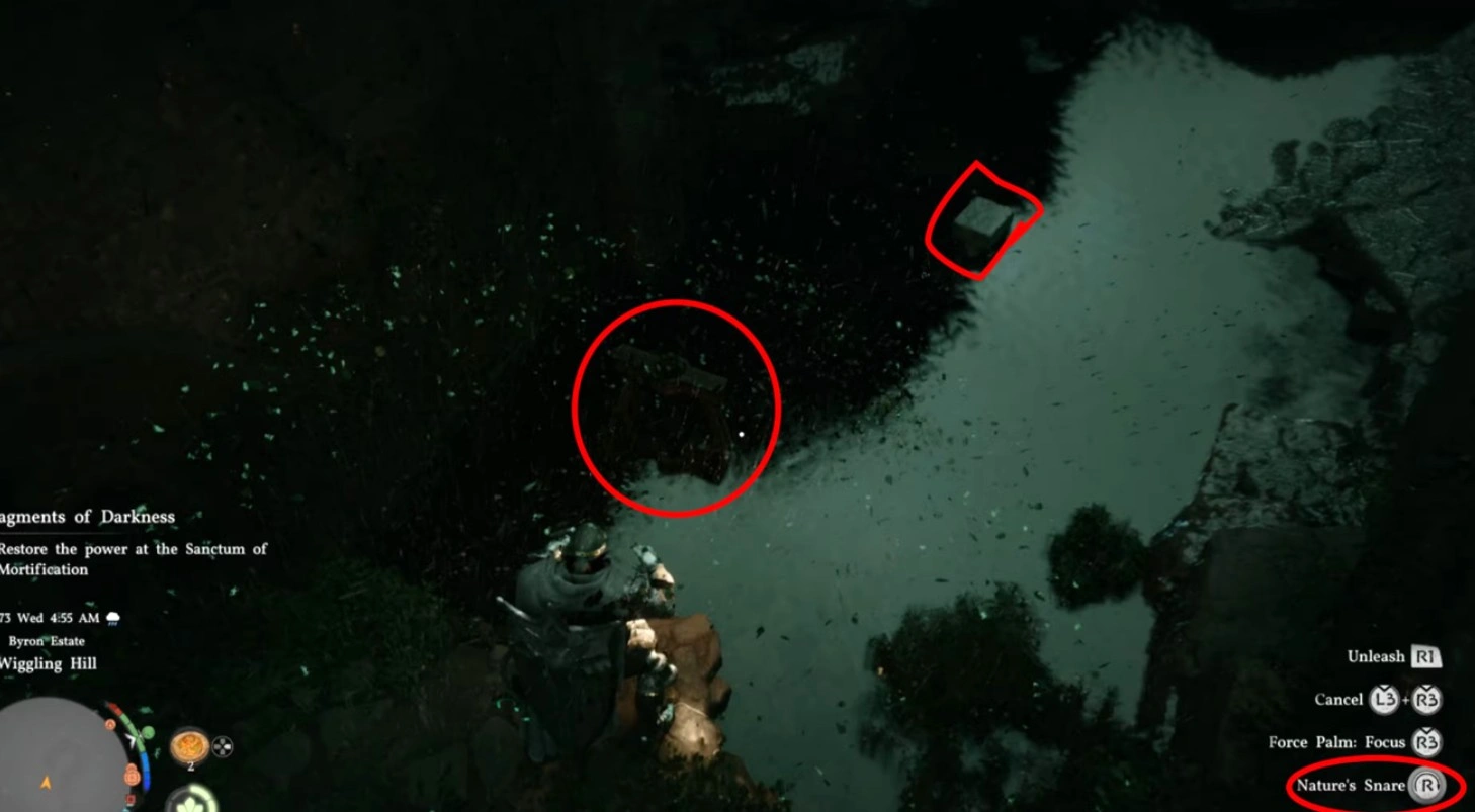 В Crimson Desert, в пределах руин на холме Уиглинг, спрятана загадка. Её разгадка требует наличия уникального умения — «Завеса ветра». Это умение позволяет поворачивать механизмы, которые, в свою очередь, осушают водоёмы. Камень Бездны, необходимый для начала, находится в местности Деменисс, юго-восточнее Багровой стены (на карте обозначена как The Crimson Wall).