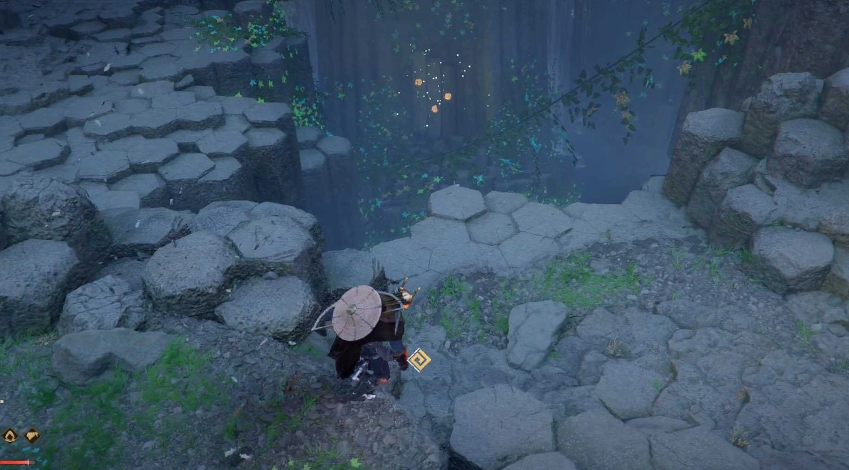 Собрав все три камня, отправляйтесь к живописному водопаду на севере. Там, в области с Таинственной энергией, вы найдете три отверстия для камней. Вставив их, вы активируете Камень Бездны, получите артефакт и откроете новую точку телепортации.