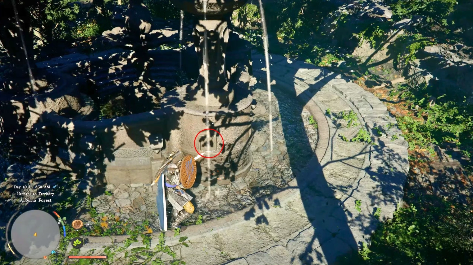 Лес Арбории расположен к северу от города Эрнанд, в самом первом игровом сегменте Crimson Desert, к западу от местности Холмы Невозврата. Зона с фонтаном будет обозначена как "Таинственная энергия" с символом вопросительного знака.