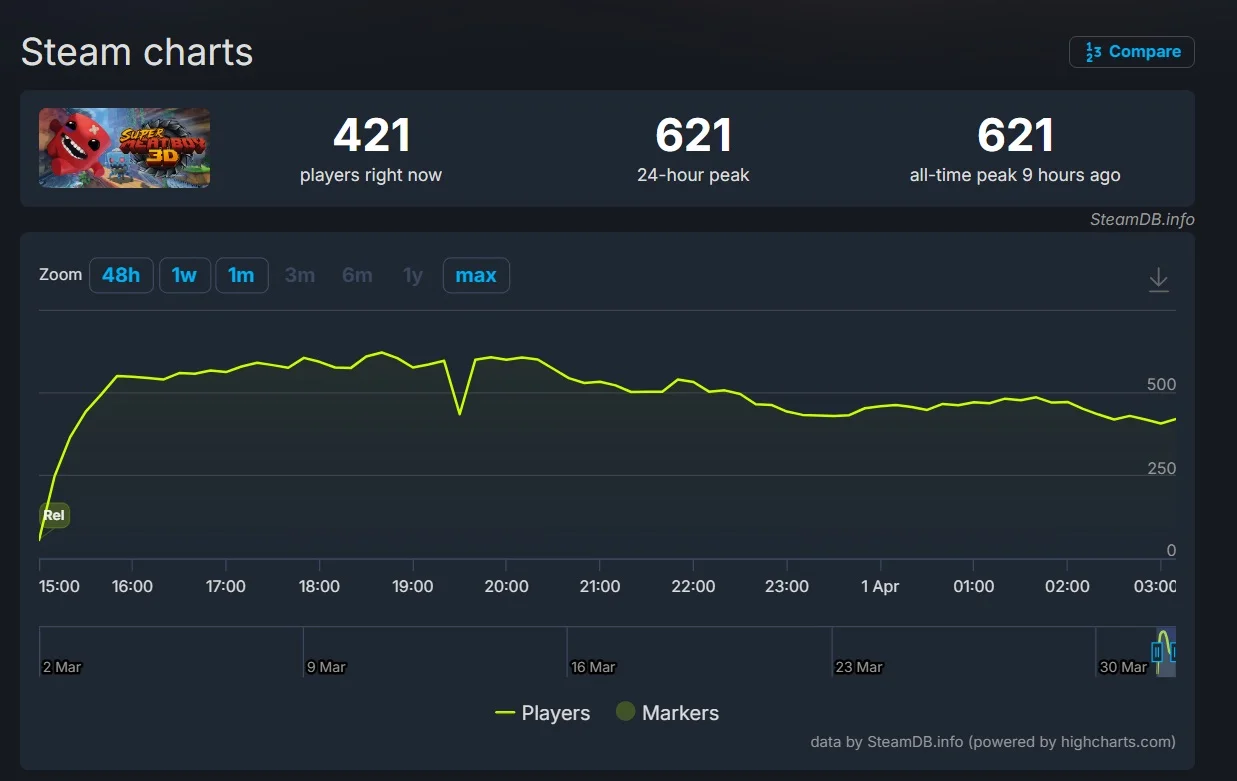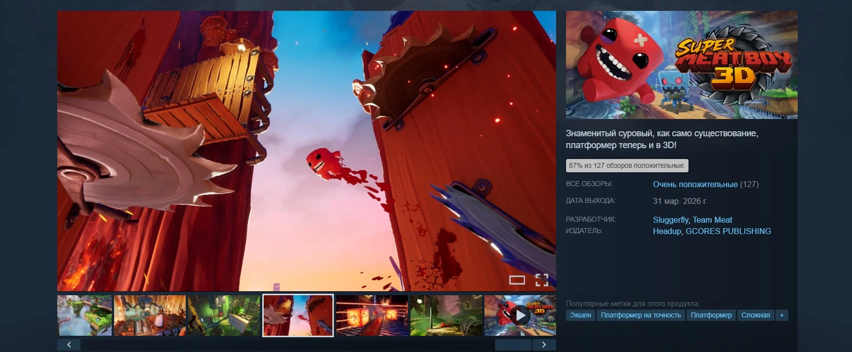Третья часть культовой серии хардкорных платформеров, Super Meat Boy 3D, теперь доступна на PC, PlayStation 5, Xbox Series (в том числе по подписке Game Pass) и Nintendo Switch 2. В России стоимость игры составляет 880 рублей, однако на данный момент её можно приобрести со скидкой всего за 792 рубля.