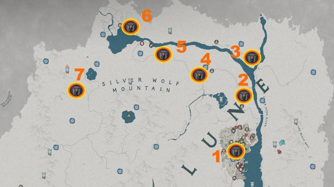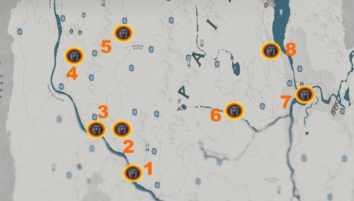 В северных землях Пайлуна также есть несколько таких артефактов. Вы обязательно побываете в этих локациях, исследуя территории за городом и продвигаясь в сторону Горы Серебряного Волка. Все они наглядно показаны на скриншоте ниже.