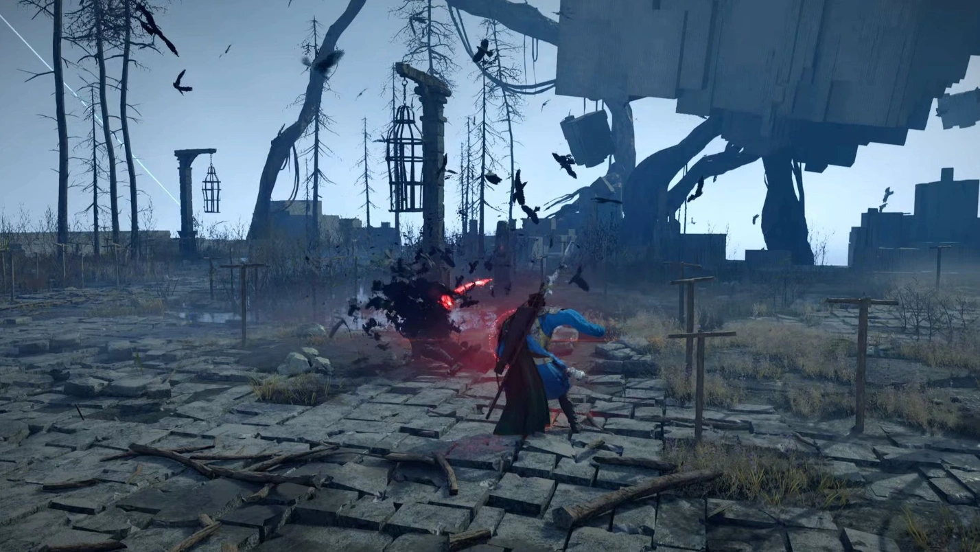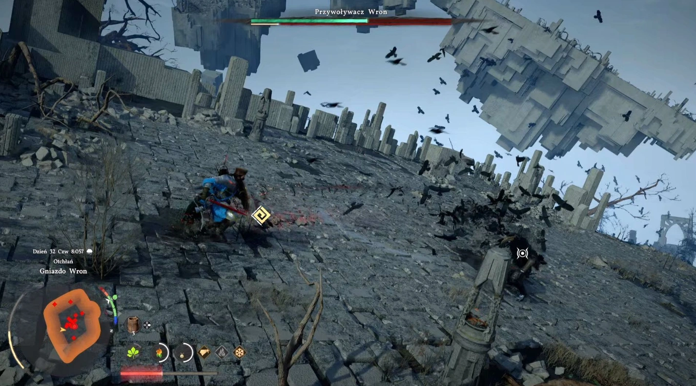 - Само столкновение с Вороном-призывателем — быстрое и опасное! Вам нужно сбить всего одну шкалу его здоровья, и враг бежит.