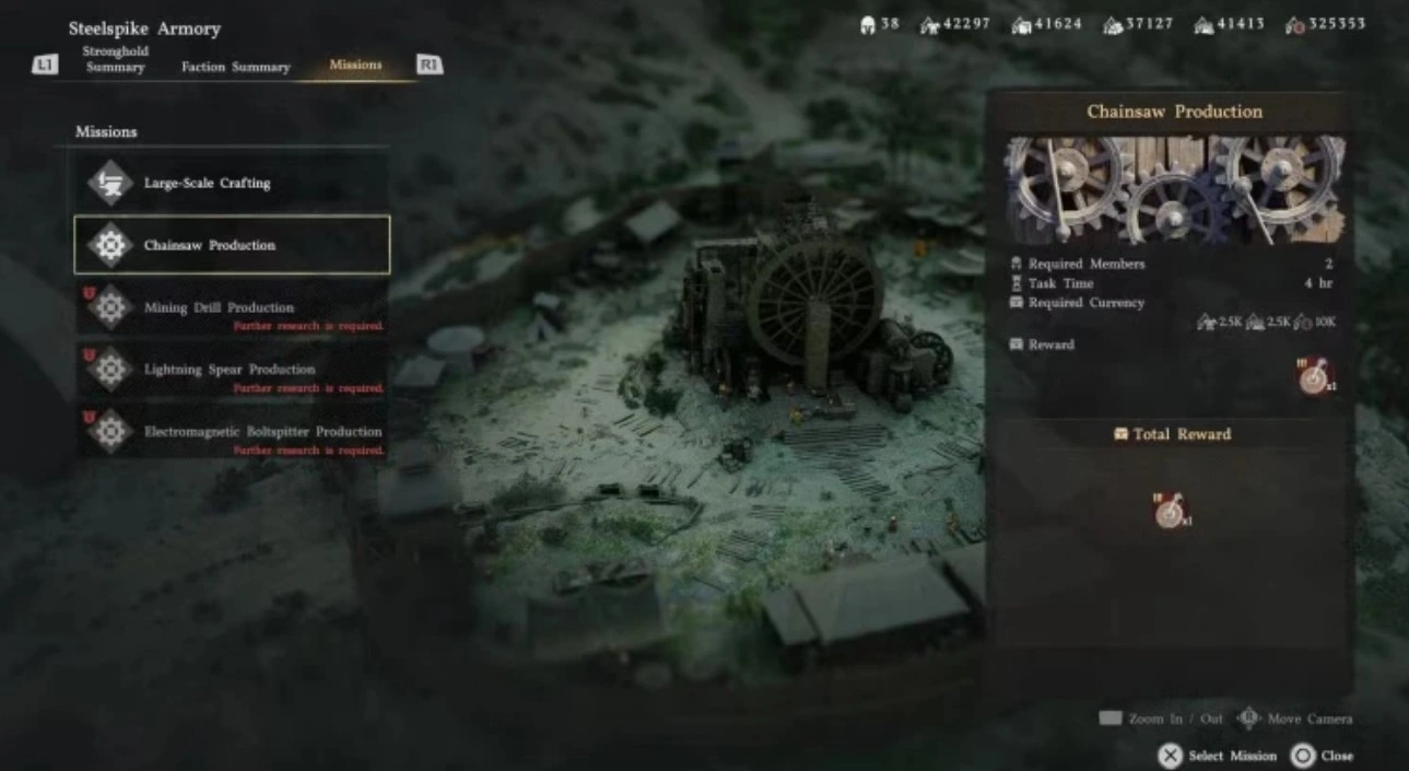 Запуск диспетчерской миссии: После завершения исследования обратитесь к Россу в лагере Воющего Холма (Howling Hill Camp). Начните миссию "Mission Dispatch: Delesyia: Steelspike Armory: Chainsaw Production".