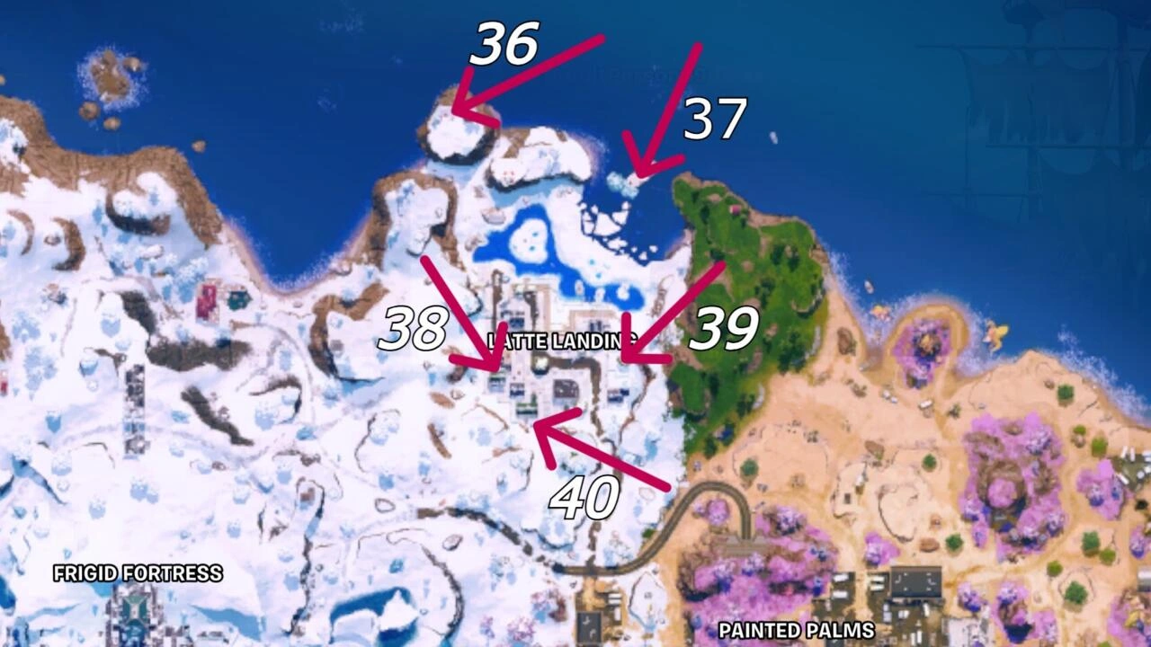 - Остров: Северо-запад, между палатками.
