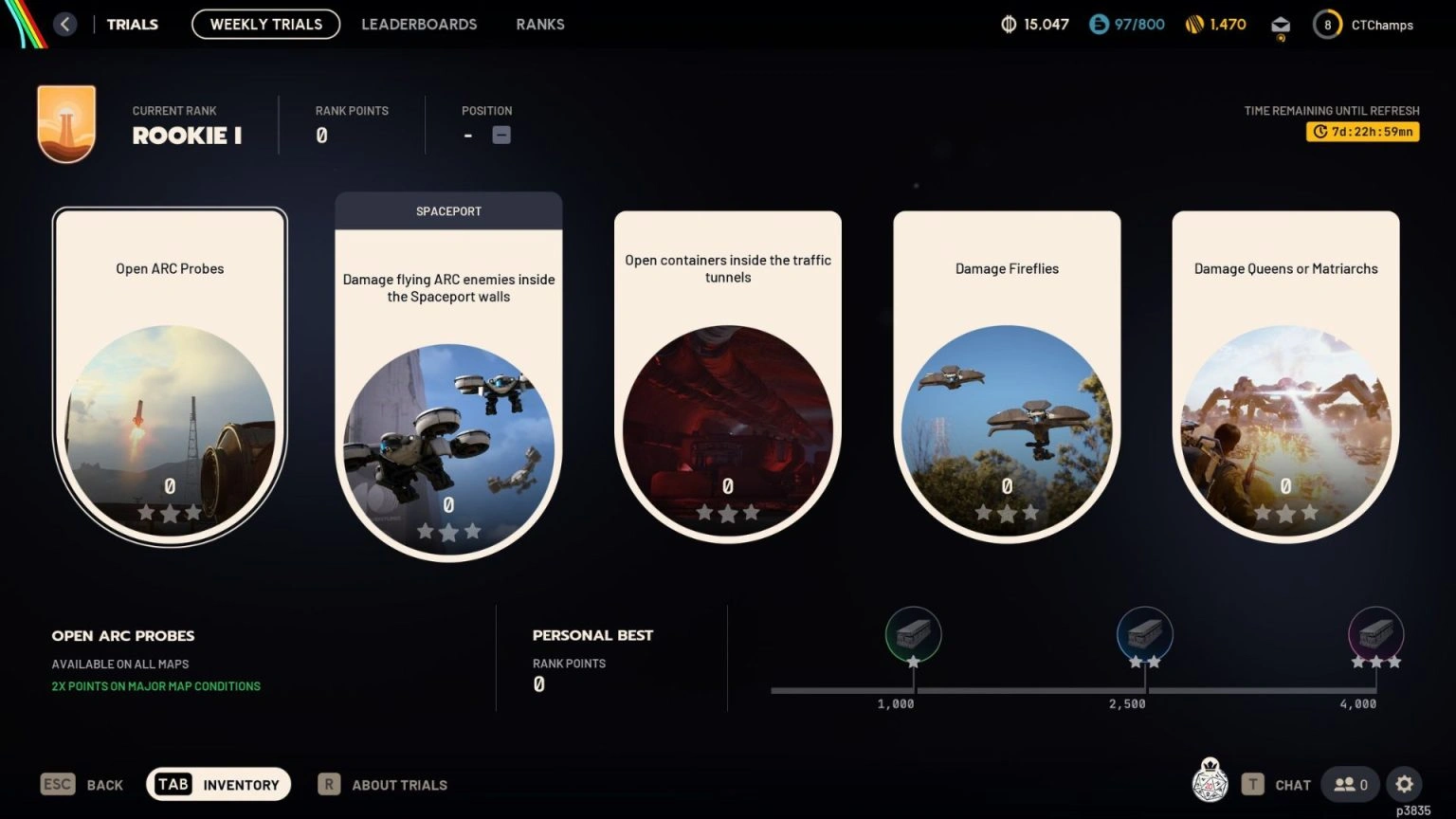 Вам предстоит пройти пять испытаний, за каждое из которых нужно набрать 4000 очков, чтобы получить все три звезды. Очки начисляются за выполнение задач, связанных с каждым испытанием. Собрав три звезды, вы увеличиваете свои шансы на получение ценных наград, включая чертежи.