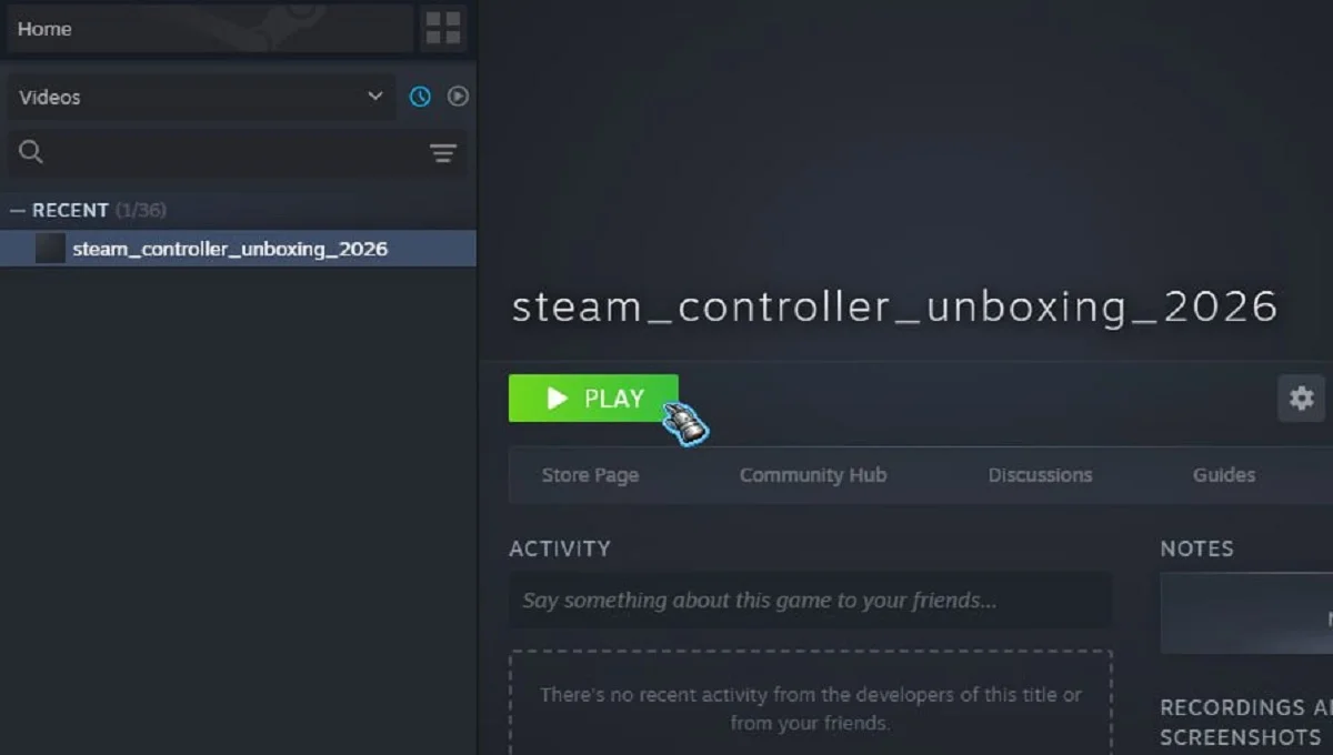 В цифровом магазине Steam обнаружилось любопытное приложение с наименованием "steam_controller_unboxing_2026". Будучи добавленным в вашу коллекцию, оно предлагает просмотр видеоролика при нажатии на кнопку "Играть", однако сам контент остается недоступным.