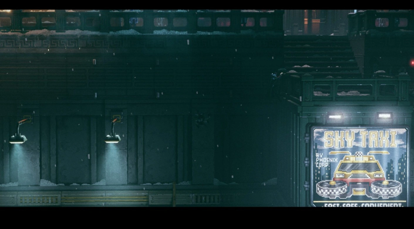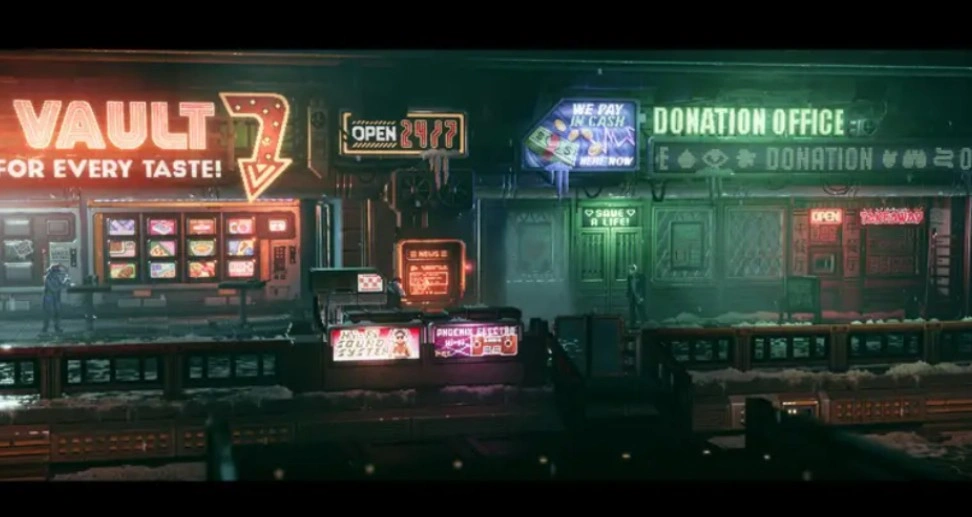 Выйдя из музыкального магазина, двигайтесь влево, скрываясь от патрульного дрона. Спуститесь по лестнице и поверните направо. Взломайте консоль, чтобы второй техник смог добраться до напитка и вернуться. Справа от этого места находится терминал News. Изучите первый раздел, чтобы получить документ.