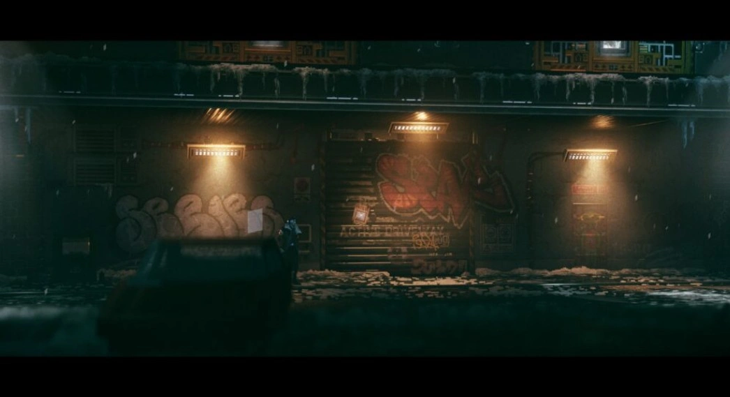 В начале главы, после того как вы пробежитесь по крыше, спуститесь на нижний уровень. Оказавшись там, обратите внимание на коллекционный предмет, прикреплённый к закрытым рольставням.