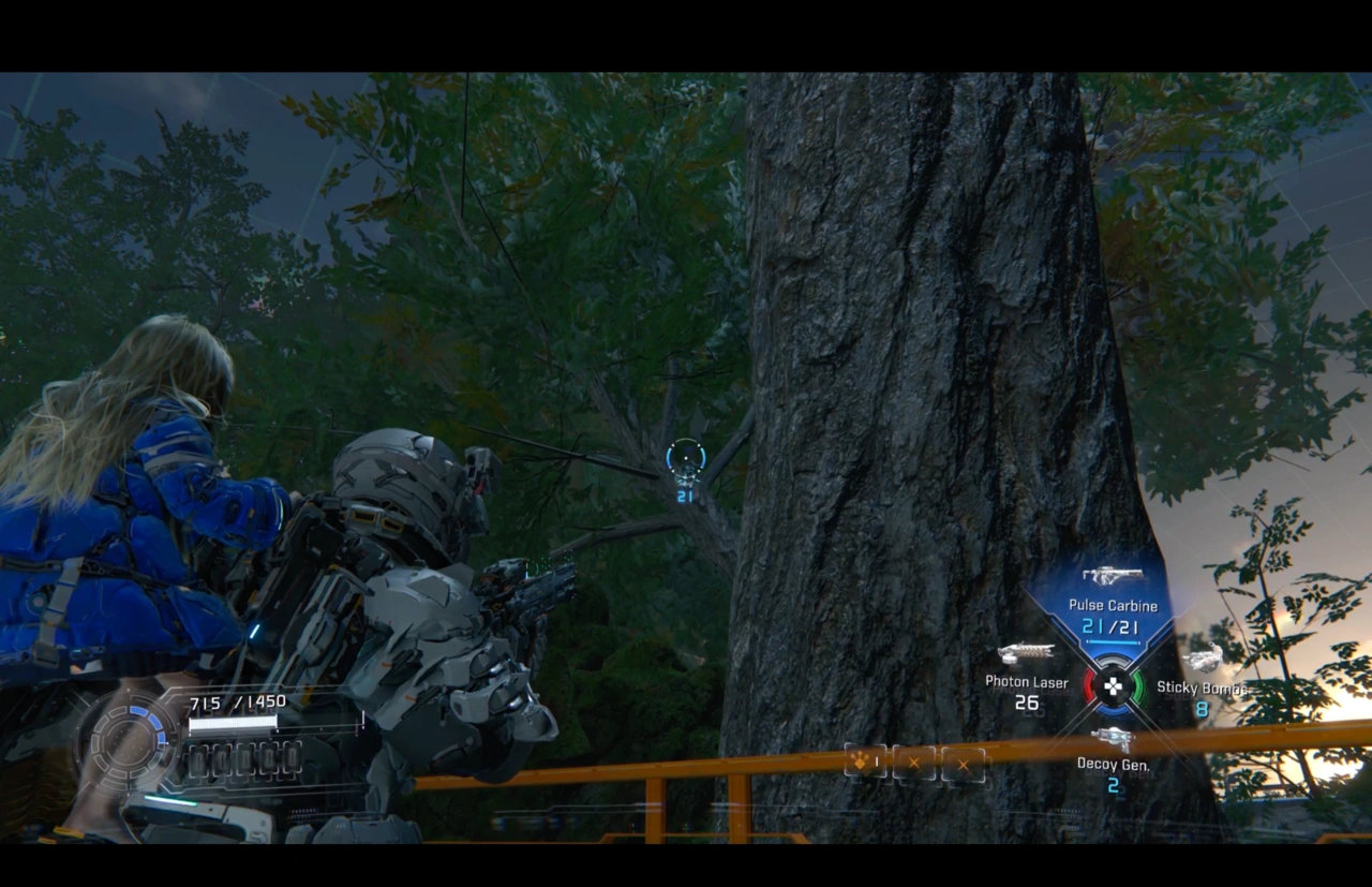 - В исследовательском отделе почвы: на ветвях дерева после боя с роботами.