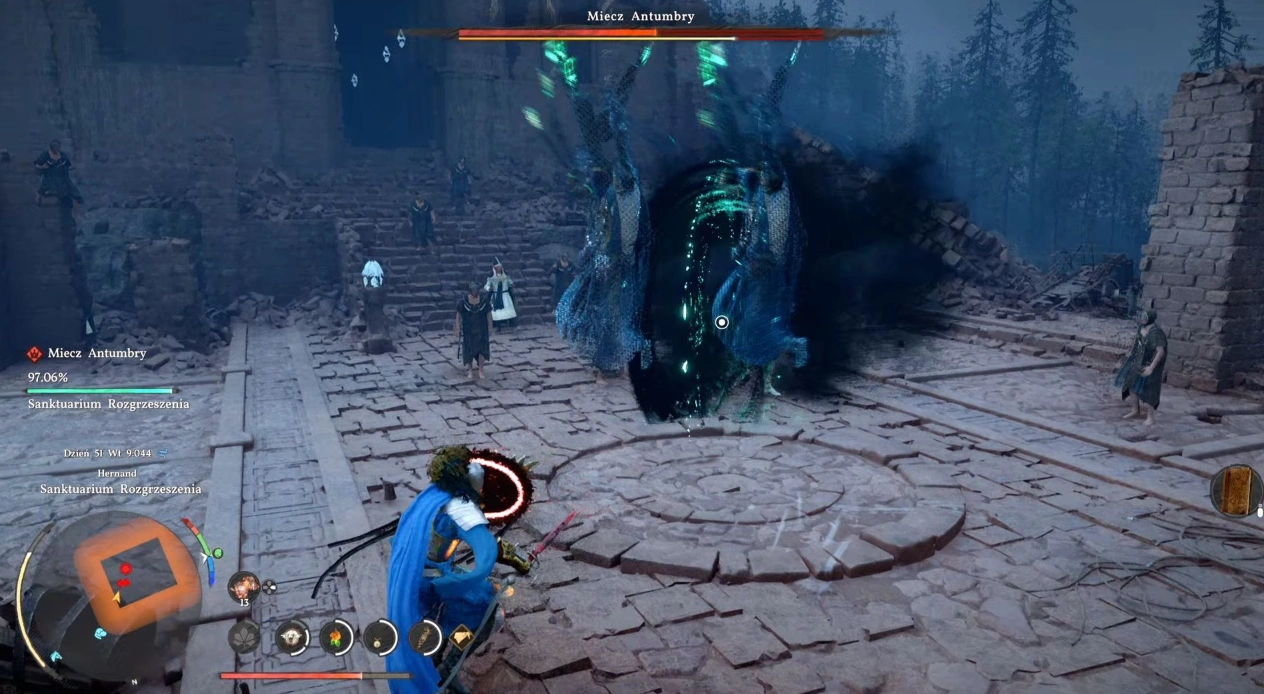Меч Антумбры — тяжеловес с хитростью. Он умеет телепортироваться, использовать волны Тьмы, и его атаки — это настоящее испытание терпения и реактивности.