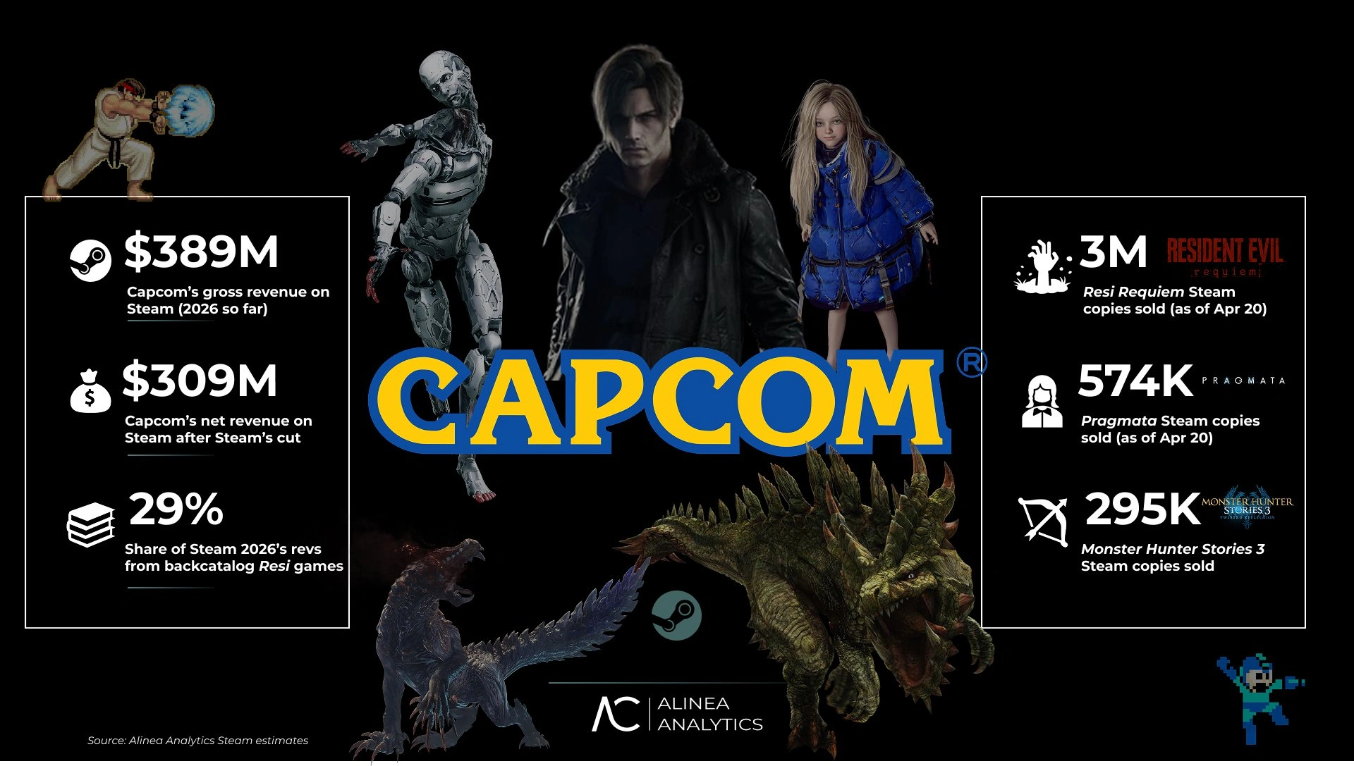По данным исследователей из Alinea Analytics, игровая компания Capcom демонстрирует впечатляющие финансовые результаты, заработав с января более 300 миллионов долларов исключительно на платформе Steam.