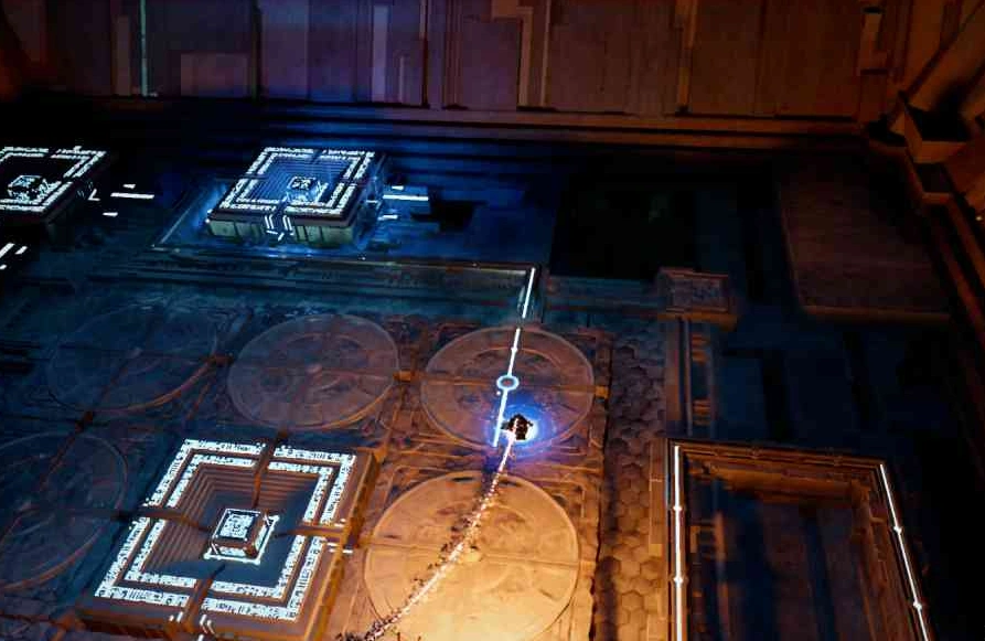 С установленным стержнем направляйтесь на запад комнаты и поднимитесь через отверстие. Повернув на 90 градусов панели в полу в северном и южном углах, вы активируете механизм. Он поднимет вас на уровень Бездны. Выбравшись наружу (через отверстие сверху или проход в южной стене), активируйте Средоточие Бездны на западе. Последним шагом будет активация центрального устройства на соседнем острове с помощью "Силовой ладони", что ознаменует завершение "Осколка небес".