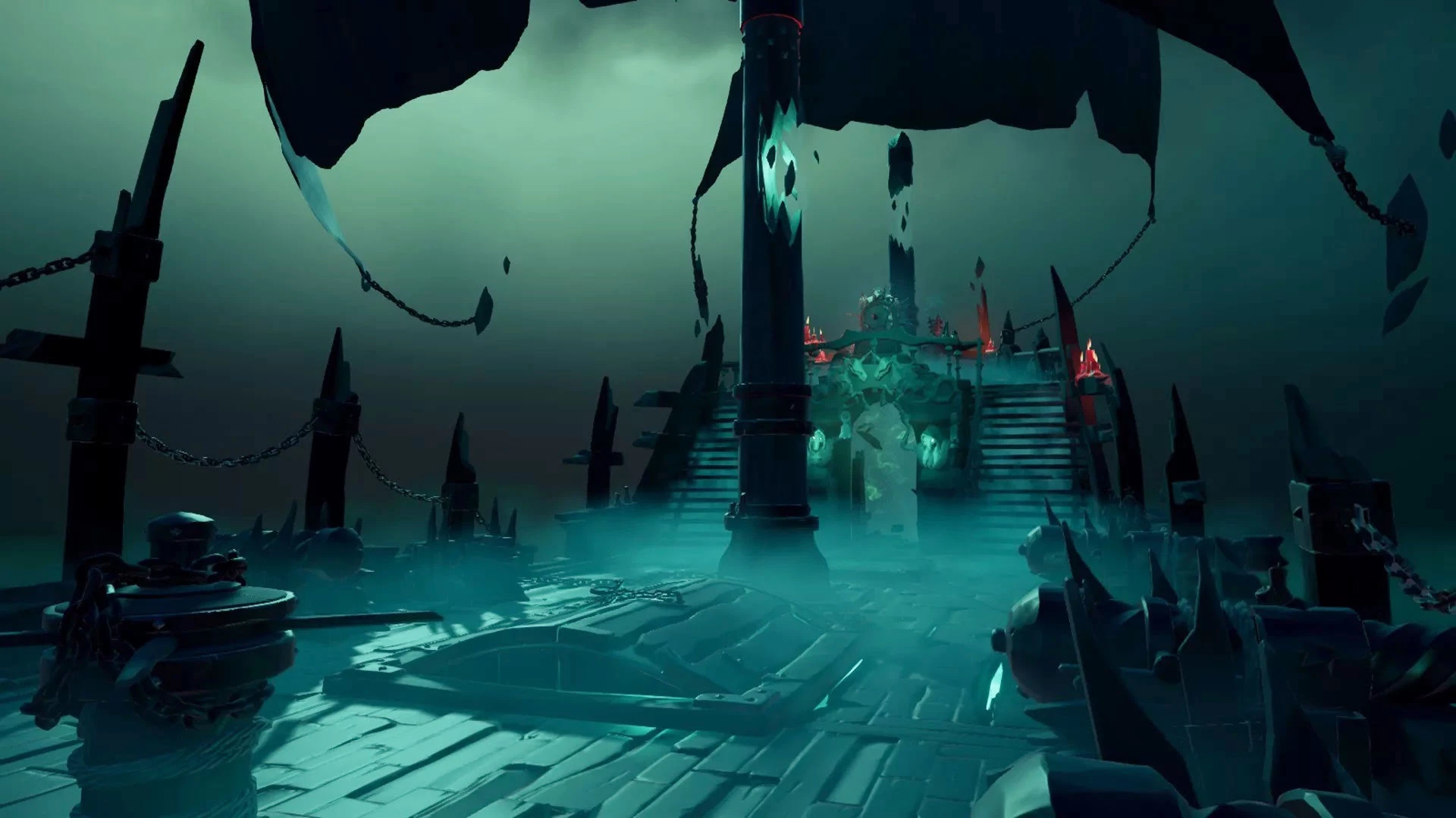 Корабль, на котором вы будете возрождаться, выглядит очень мистически и крайне любопытно. Даже просто ради интереса, все-таки рекомендуется хотя бы разок умереть, чтобы увидеть призрачное величие собственными глазами. Красные свечи, зеленый туман, призрачное оформление с костями в капюшонах. Многим пиратам это может понравиться.