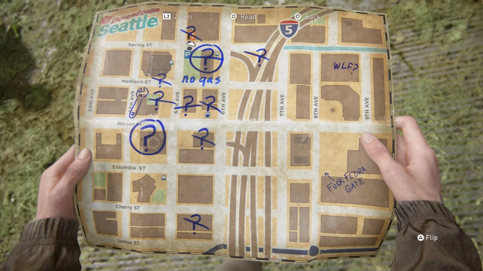 В The Last of Us: Part 2 Элли и Дина попадают в Сиэтл, обнесенный стеной разрушенный город. Это огромная локация, которую можно долго изучать. За полное обследование локации и посещение всех интересных мест можно получить трофей «Обзорная экскурсия» (Sightseer).