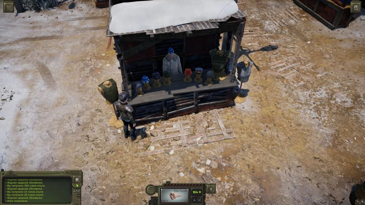 Награда: 81 опыт, мухомор, рассол и самогон. Если во время диалога попробуете вариант с применением внимания, то получите еще немного опыта.