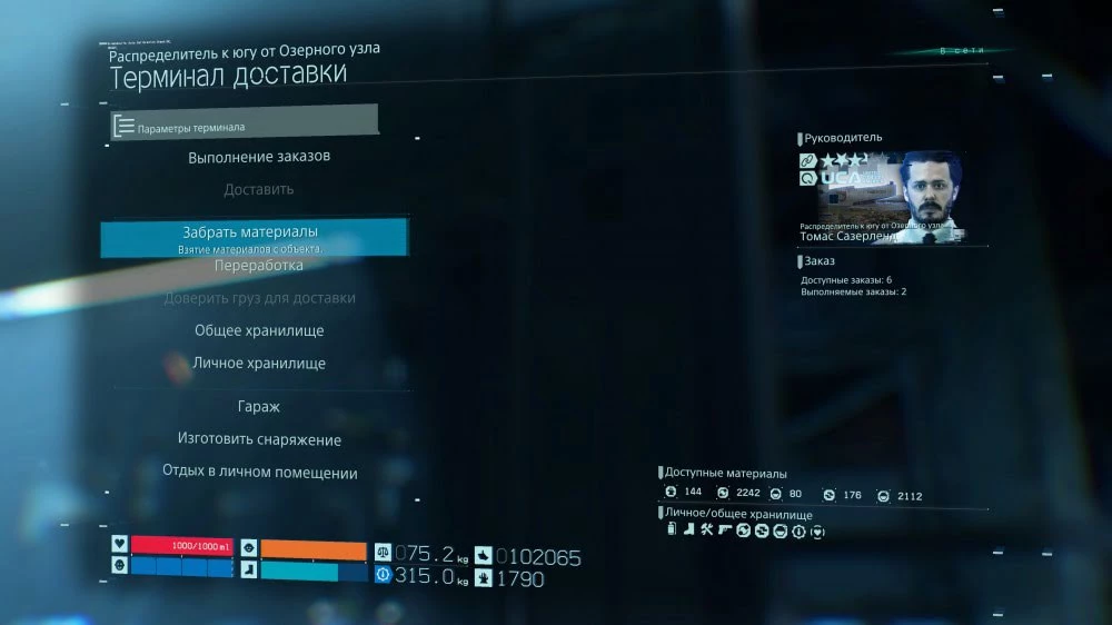 Ресурсы можно найти в открытом мире. Их можно доставить на базу (в меню Переработки), в результате чего они там и останутся. В любой момент их также можно забрать. Для этого откройте Терминал доставки, зайдите в меню «Забрать материалы» и возьмите себе столько ресурсов, сколько есть на базе. Кстати, чем выше уровень доверия клиентов к вам, тем больше грузов на их базе вам доступно. Это значит, что вам предстоит выполнять много заказов, чтобы повысить доверие клиентов.
