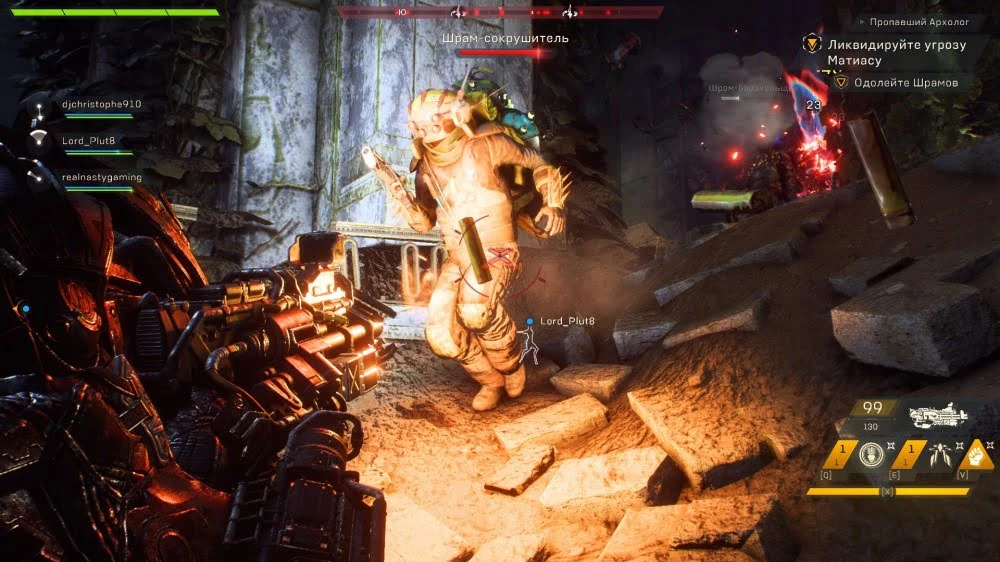 Еще одна важная механика — это подбор «аптечек» и восстановителей брони. Оба этих предмета часто сыпятся с убитых противников, давая вам возможность быстро подлатать джавелин и свое здоровье. Также после гибели противники нередко оставляют патроны, которые имеют свойство быстро заканчиваться. Не ленитесь подбирать их, чтобы не остаться на боссе с пустым магазином.