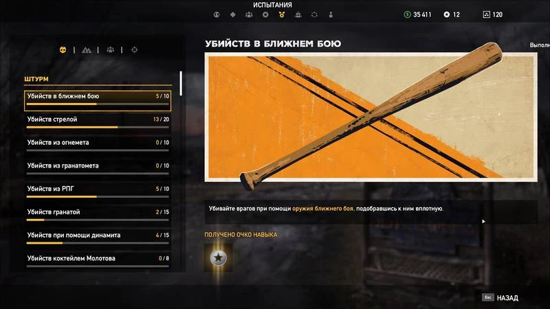 - Выполнение испытаний. Вы можете зарабатывать от одного до четырех очков навыков за выполнение этих заданий. Испытания связаны буквально со всеми игровыми аспектами, от убийств до охоты и рыбалки.