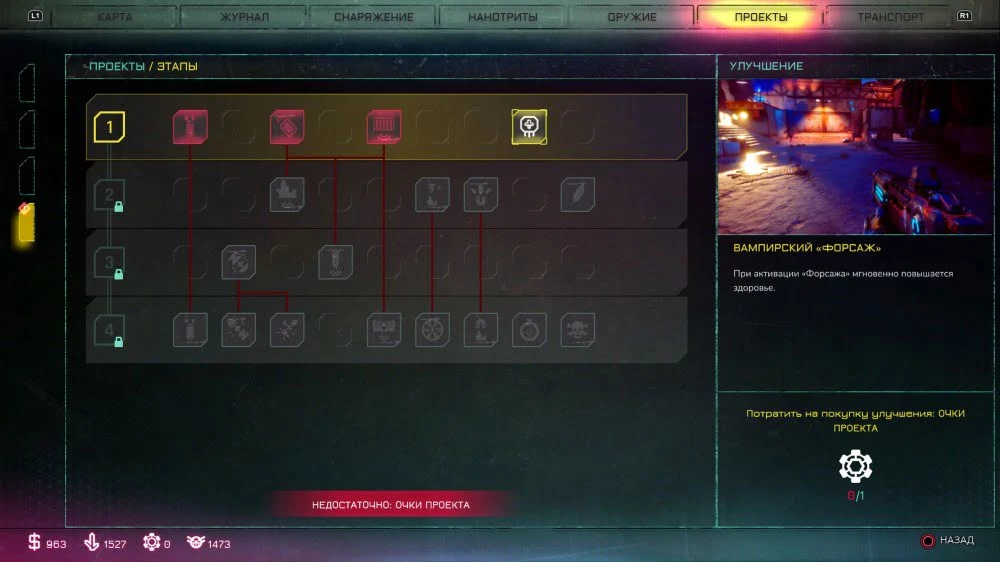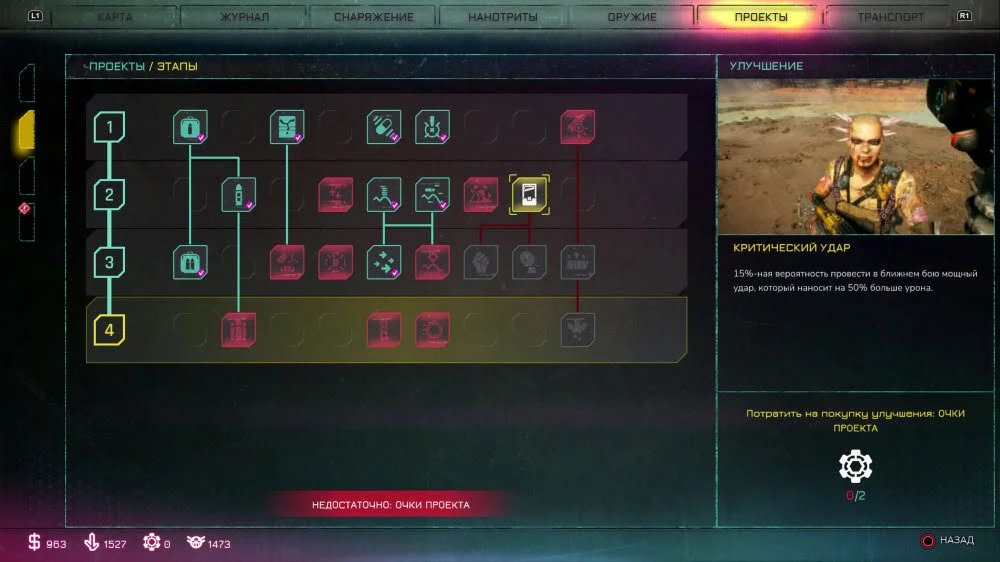 - Возьмите и выполните хотя бы несколько сюжетных миссий у этой троицы, чтобы разблокировать каждое дерево проектов.