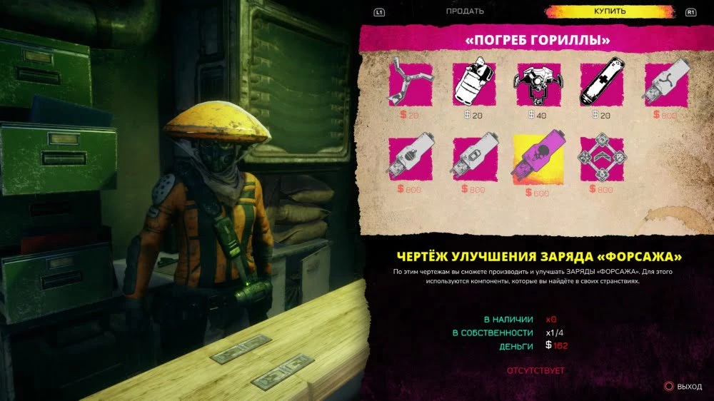 Опять же, при наличии денег большинство ресурсов можно купить у продавцов, но мы бы рекомендовали не отлынивать и обыскивать все закоулки. Поиск компонентов позволит хорошо сэкономить. Тем более что взрывчатые, электрические и химические компоненты достаточно дороги, но сыпятся из врагов в качестве награды за уничтожение.