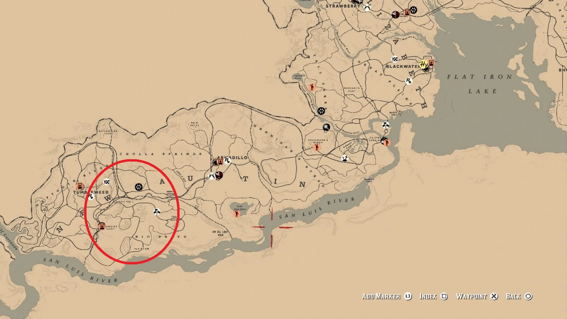 Легендарный Sapa Cougar обитает в южных и западных регионах Нью-Остина, от фермы Риджвуд до южной части Рио-Браво, как показано на карте ниже. Однако он не появится сам по себе – вам нужно достичь уровня натуралиста 5 и отправиться к Гарриет Давенпорт. Одна из миссий, которую она может предоставить вам, – поймать легендарного Сапа-пуму, и, приняв ее, вы попадете в более структурированную миссию, где вам будет поручено выследить ее из места где-нибудь в области нереста, отмеченной ниже.
