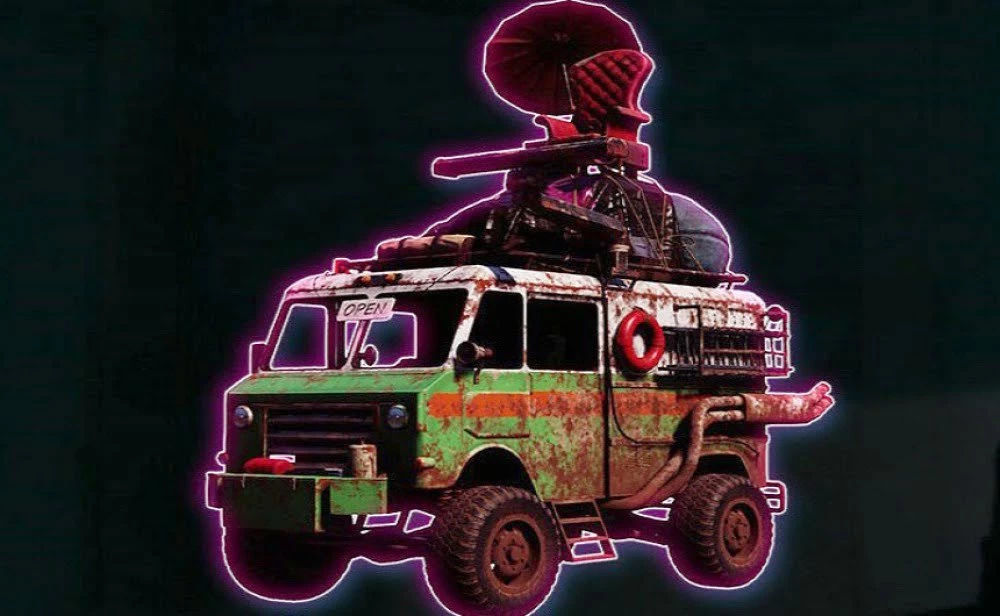 Торговый или грузовой автомобиль в Пустоши. «Словоохотливый путник» (Loquacious Wanderer) разъезжает по пустоши и предлагает большой выбор товаров, которые можно купить.