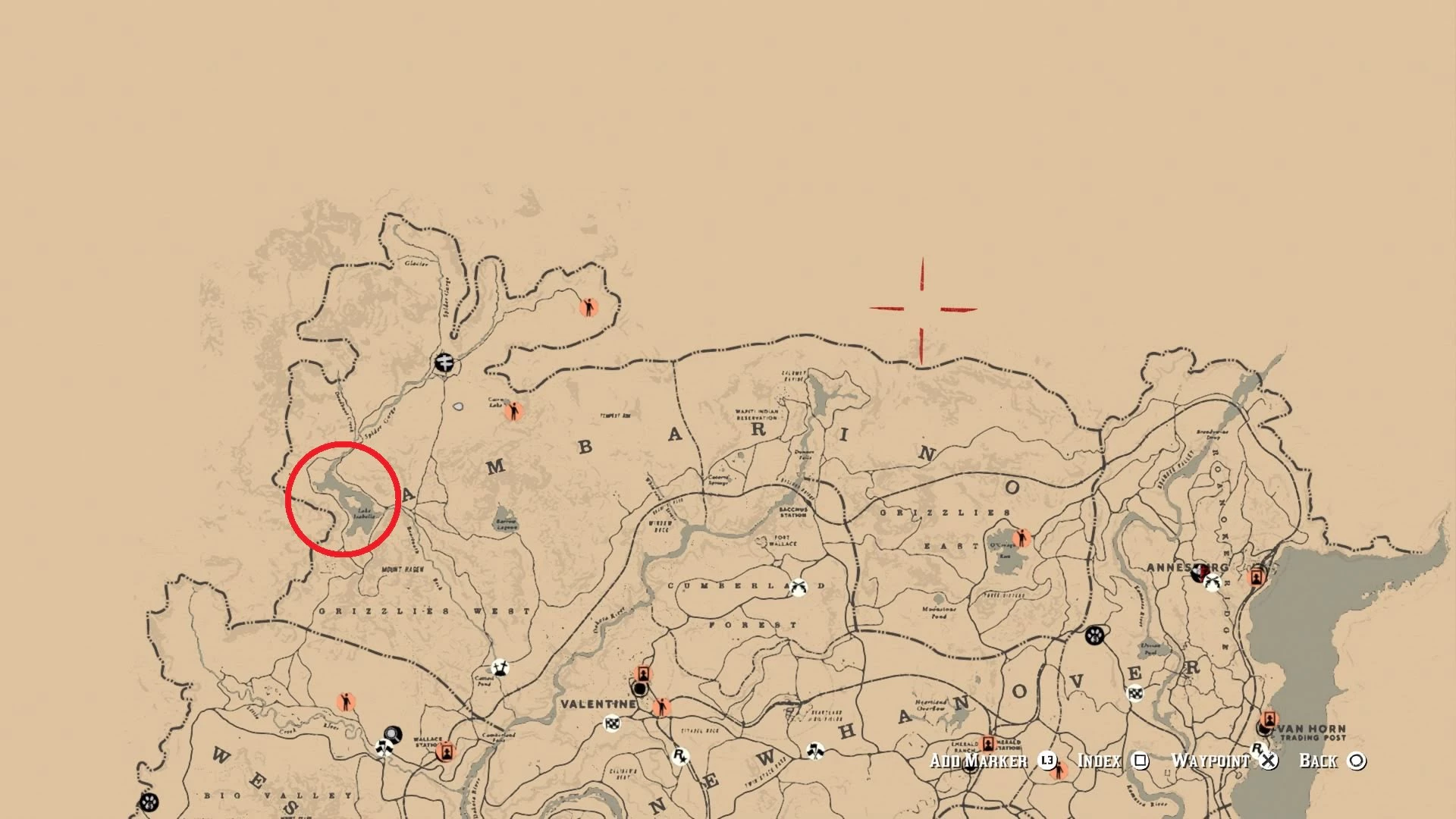 Вы можете найти легендарного зубра-виньяна в Red Dead Online на берегу озера Изабелла, на дальнем западе от Амбарино. Мы специально нашли его на Северо-Западном берегу, хотя вполне возможно, что он может появиться и в других местах в этом районе.
