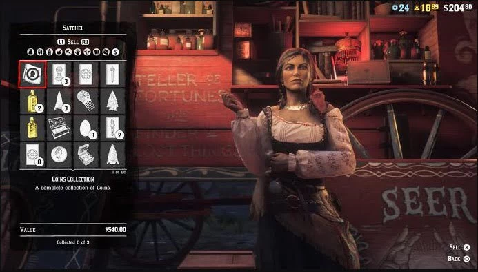 Чтобы начать карьеру коллекционера, вы должны пойти к мадам Назар. Женщина путешествует по всей карте в Red Dead Online, поэтому у нее нет фиксированного местоположения. Однако у вас не должно возникнуть проблем – ищите желтый значок с подписью Уважаемый коллекционер.