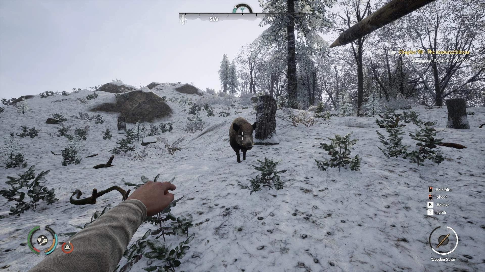 На кроликов легче всего охотиться с луком. Поскольку они бегают по земле, их трудно заметить весной и летом, когда растительность пышная и трава высокая. Вы можете много попрактиковаться в метании копья. Используйте Ctrl (по умолчанию), чтобы подкрасться, но имейте в виду, что вам нужно выдержать правильное расстояние, иначе вас заметят, и кролик убежит.