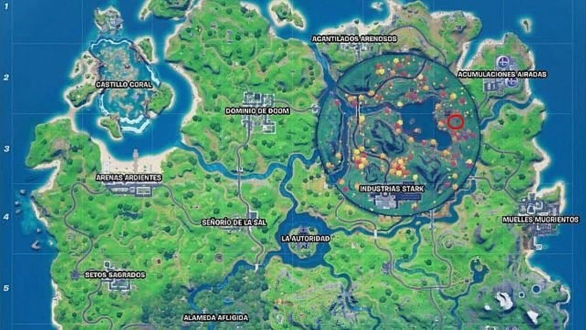 Секретный дом у озера Тони Старка находится на северо-восточной части карты, немного выше недавно появившейся области «Stark Industries». Мы отметили нужную область на скриншоте ниже.