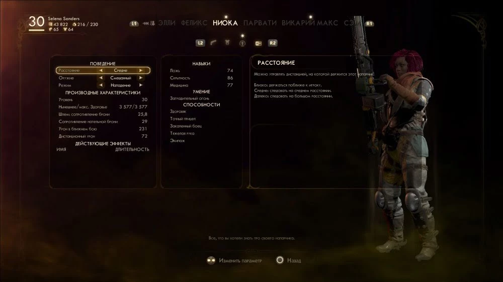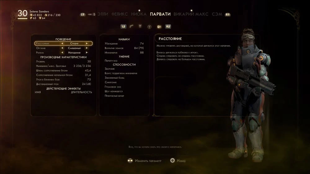 Всего в The Outer Worlds шесть напарников. Нельзя сказать, что от них есть какая-то существенная помощь, но как минимум вы получаете бонус к определенному навыку (нужно активировать советующий перк у напарника) и увеличивается грузоподъемность. Кроме того, иногда персонажи могут сказать что-то полезное в диалоге или применить свой навык при решении квеста.