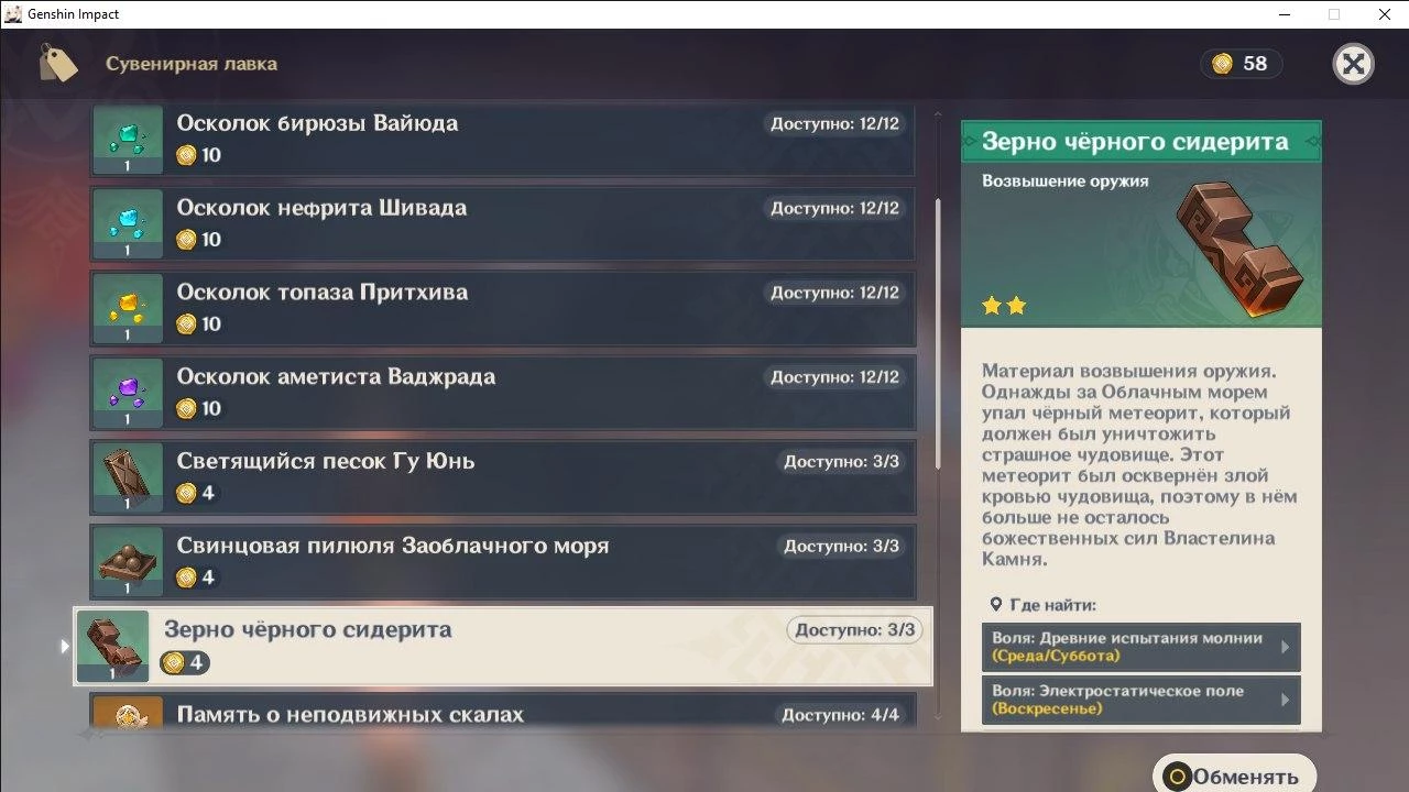 Прокачка в Genshin Impact наследует в себе традиции азиатских ММО, а следовательно, для комфортной игры Вам будет необходимо прокачивать не только Ваших персонажей, но и их оружие. А для этого Вам придется потратить очень много ресурсов. И сегодня, мы расскажем как получить зерно черного сидерита в Genshin Impact!