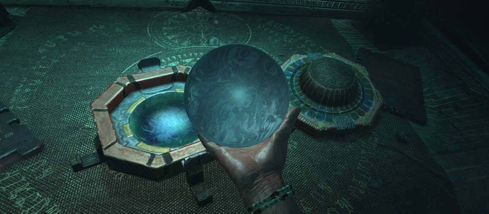 Обратите внимание, что можно уехать и без создания витае. Если же решитесь — несите пирамидку в комнату с креслом. На стенах вы можете видеть рецепты создания витае. Все они связаны с пытками. Соберите необходимые инструменты со столов. Также нужно найти нечто похожее на носитель с программой. На каждом из них есть знак, обозначающий, какие пытки будут применяться.