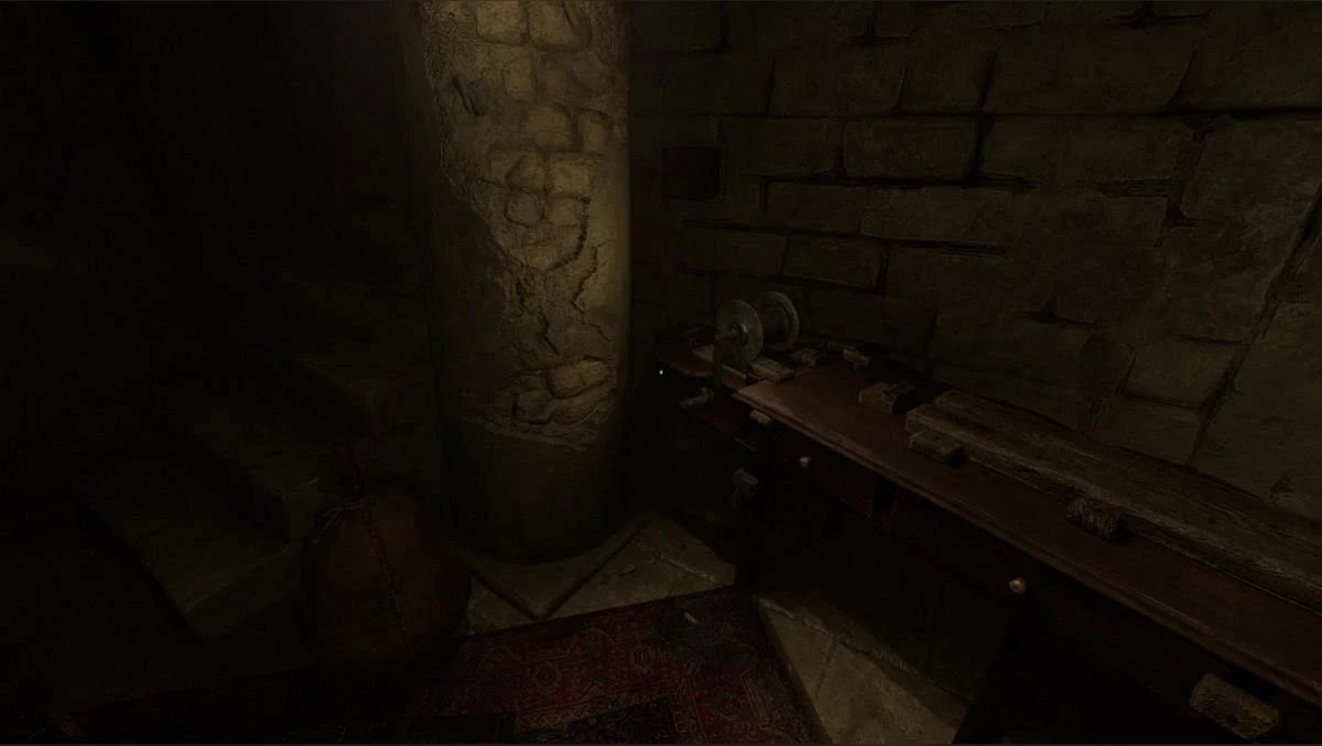 В арсенале вы найдете станок для изготовления боеприпасов и рецепт. Вам понадобится сера, уголь и селитра. Серу и уголь можно найти здесь же в арсенале. Пройдите далее по коридору (обратите внимание на ловушку — арбалет). Зайдите в первую дверь направо. Здесь вы найдете уголь, который можно сразу же и измельчить.