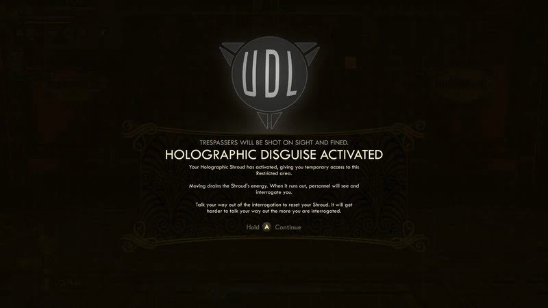 В целом кратко о работе голографического плаща вы узнаете от Финеаса Уэллса, безумного ученого, который и разработал этот гаджет. По сути, данное устройство на короткое время позволяет вам выглядеть так же, как и сотрудники любой охраняемой территории. Но, как писалось выше, для этого также нужно отыскать подходящее удостоверение — своего рода карта, которую считывает девайс.