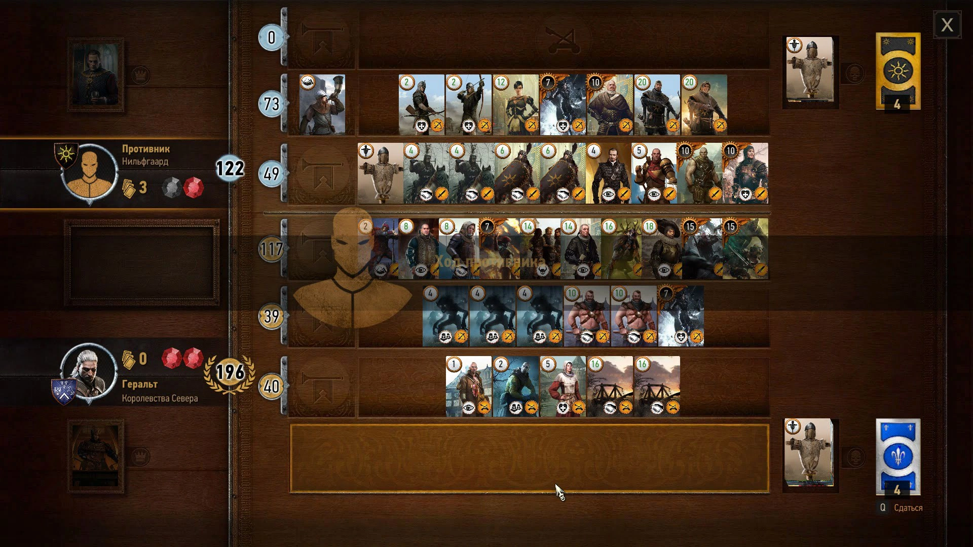 - Нильфгаард — сильная колода карт, отличается мощными особыми картами;