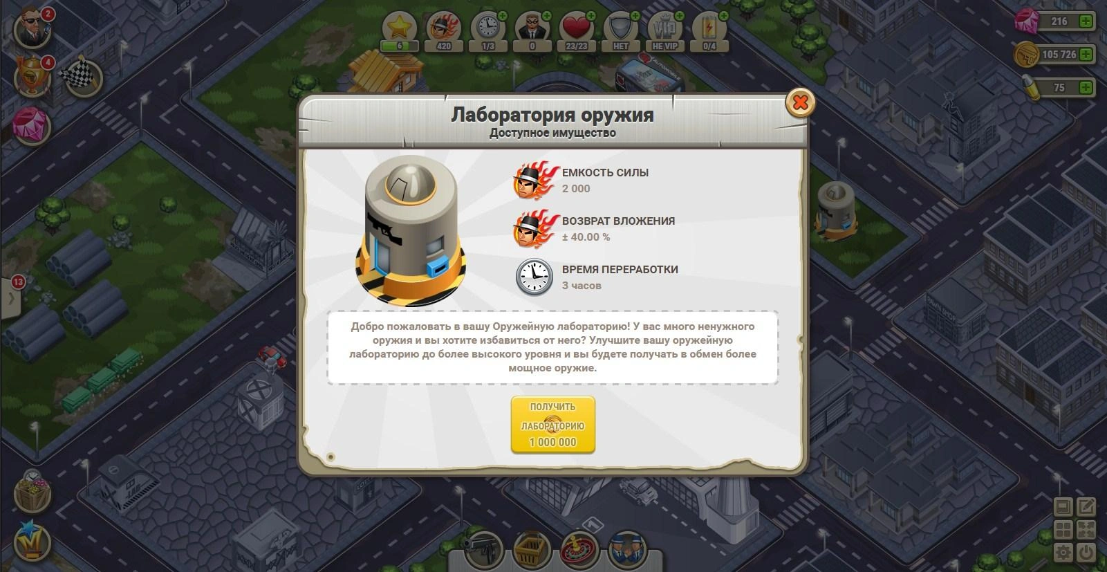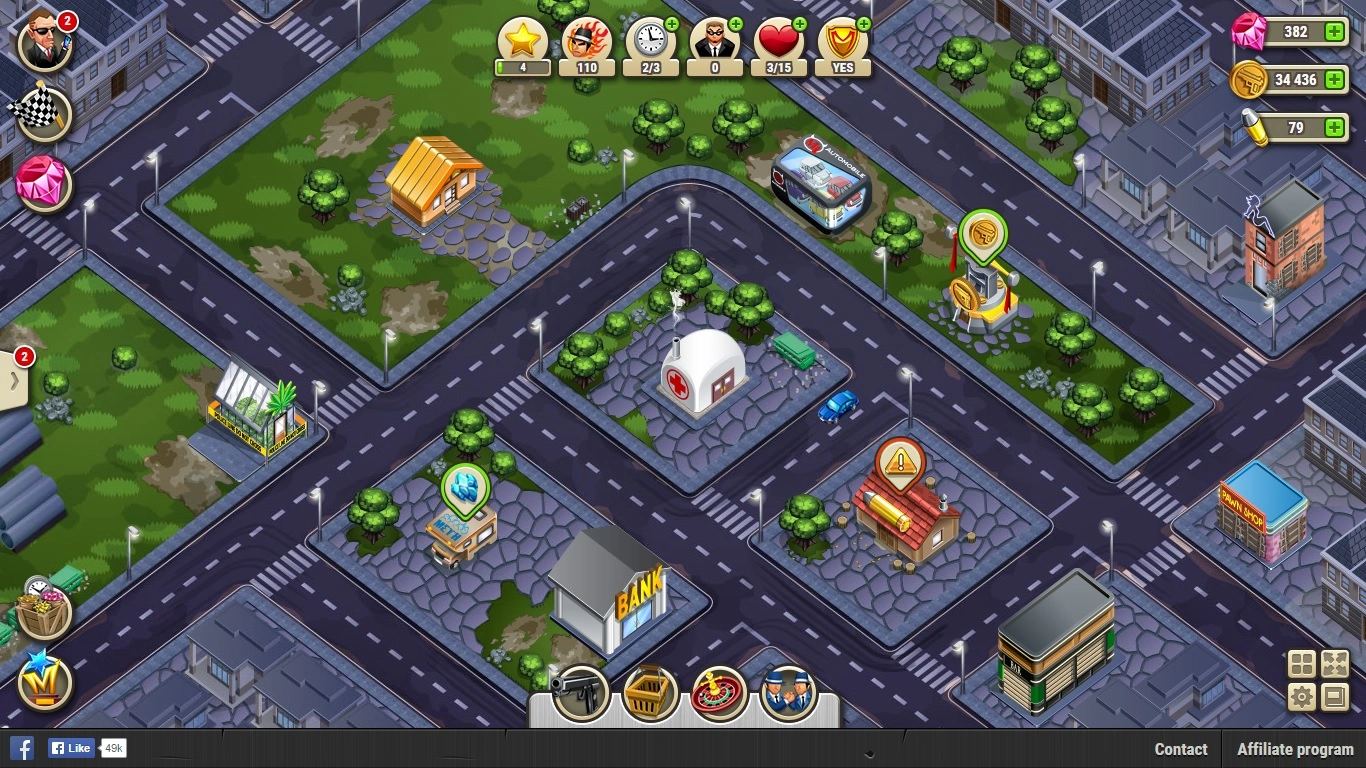 Без описания возможностей развития обзор MafiaBattle был бы не полным. Ваш квартал изначально довольно печально выглядит. Но вы можете сделать из него процветающий район. Нужно улучшать здания, которые помогают вам в нелегком сражении с другими семьями. Ваши вылазки не всегда будут безопасны, поэтому когда вы получите повреждения стоит заглянуть в больницу.