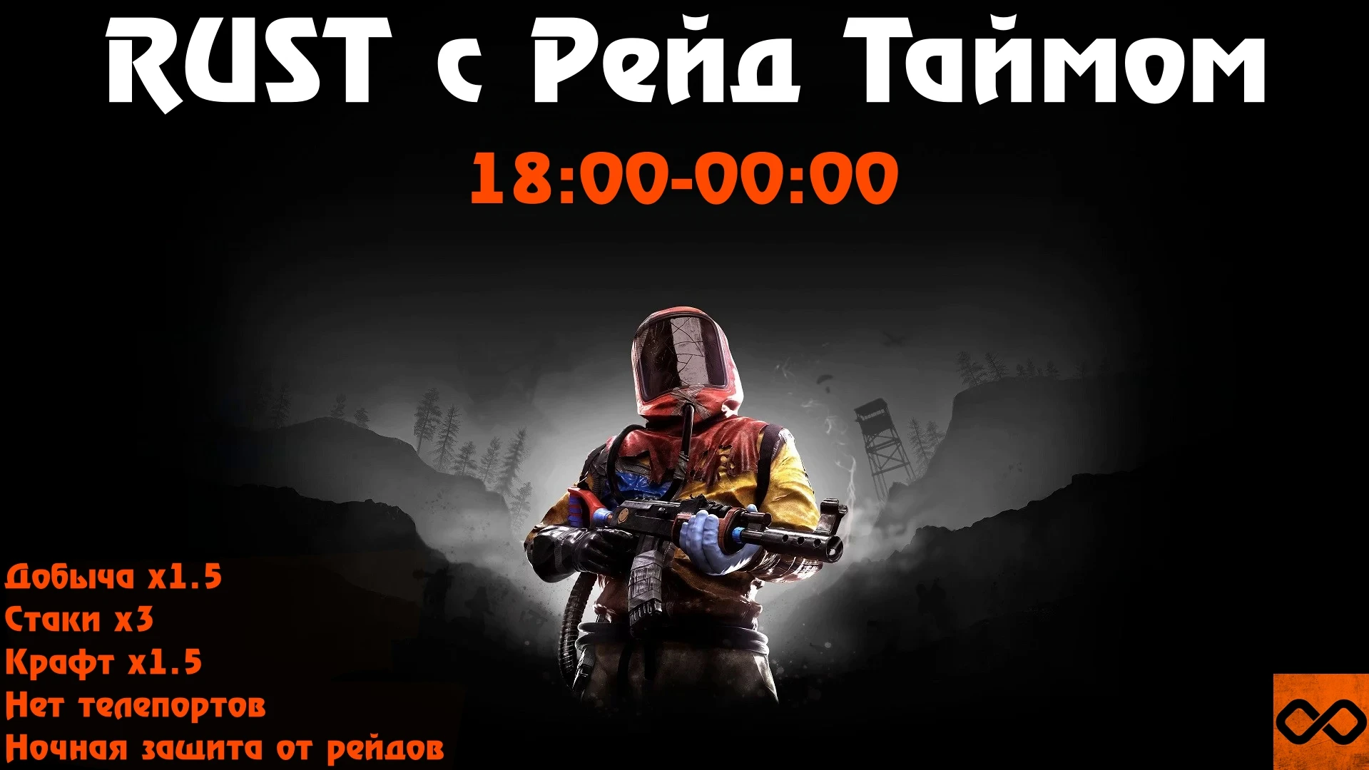 🟢 Название: INFINITY RUST | x1.5 | Raid Time | Noob Friendly