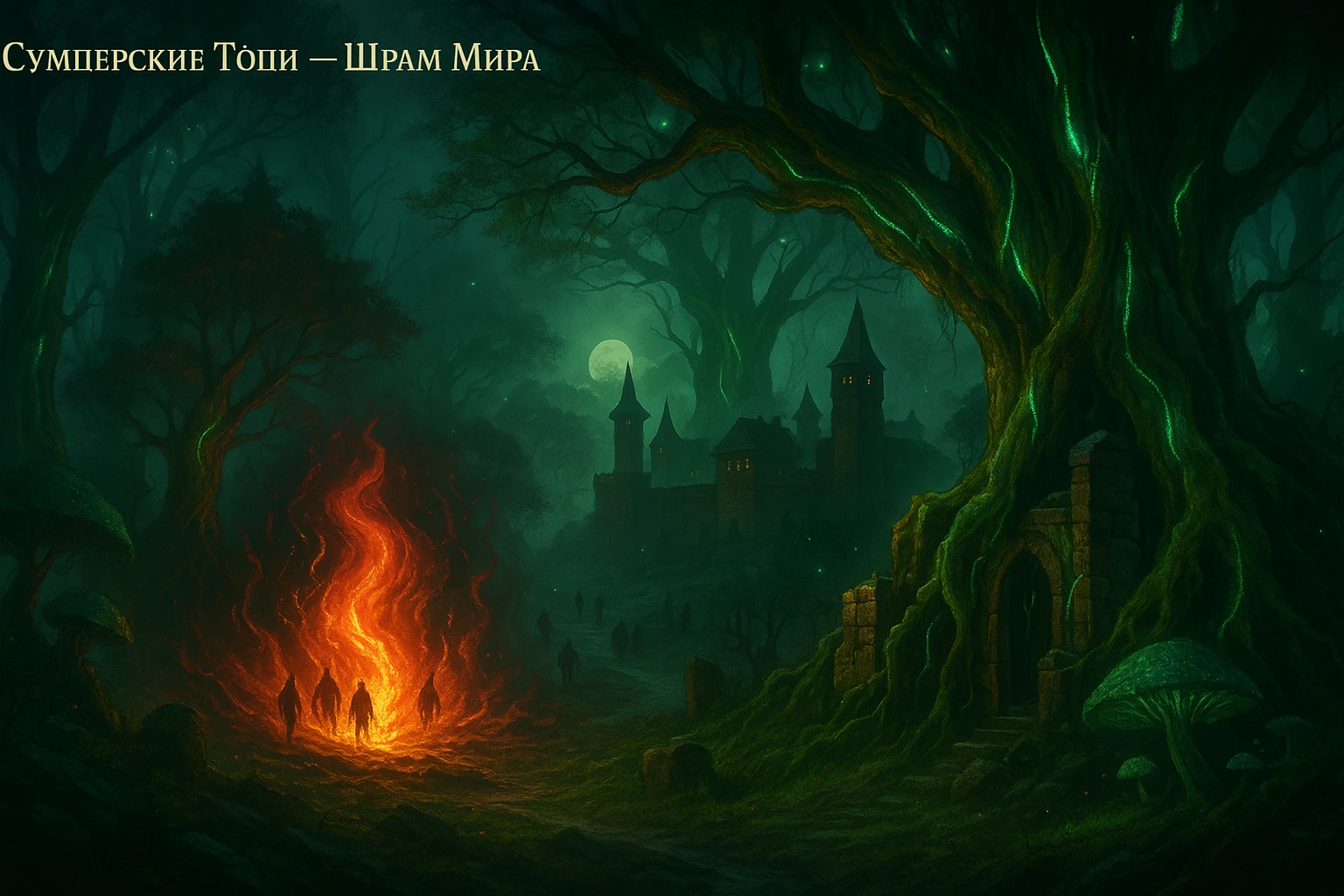 Полтора века назад здесь случился катаклизм, вызванный последним обрядом Цериосина. Леса были сожжены, почва вздыбилась, а воздух пропитался остаточной силой обряда. Но вопреки ожиданиям, Сумперские Топи не превратились в пустошь. Природа расцвела снова, но в искаженном и часто пугающем виде.